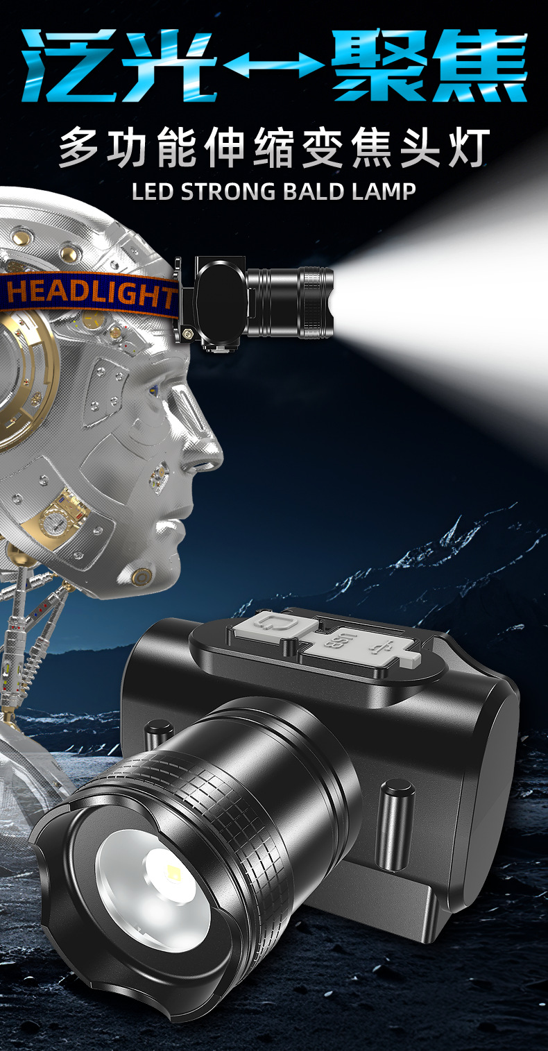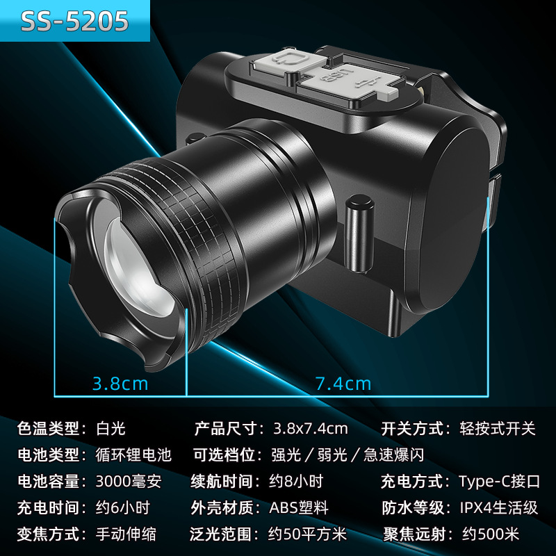 Led 강한 빛 장거리 헤드 장착형 손전등 충전식 슈퍼 밝은 헤드 라이트 낚시 램프 야외 미니 손전등 광부의 램프