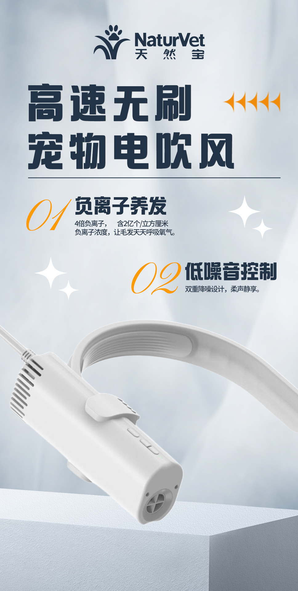 Natural Treasure 애완 동물 목 헤어 드라이어 고속 헤어 드라이어 음이온 고출력 저소음 고양이 및 개 목욕 헤어 드라이어