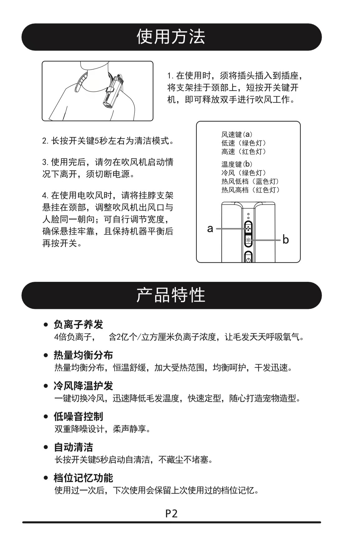 • 목에 매달린 헤어드라이어