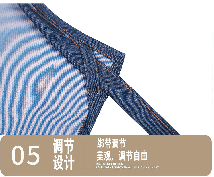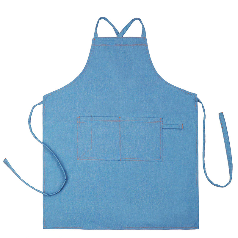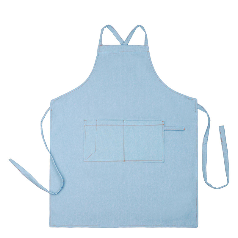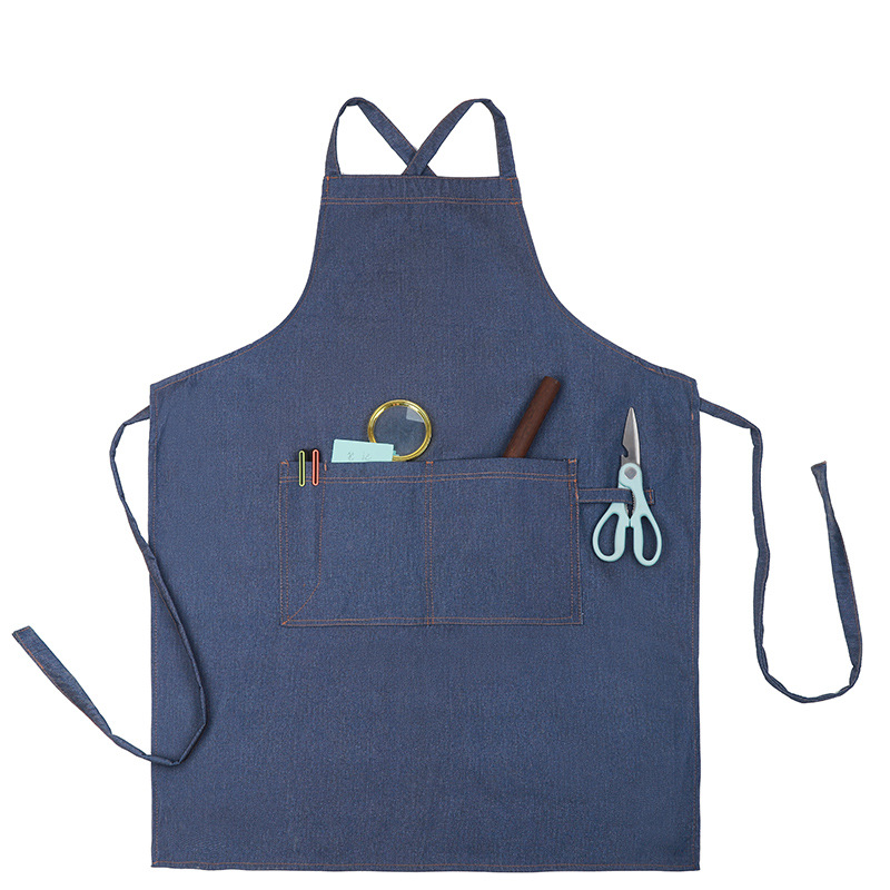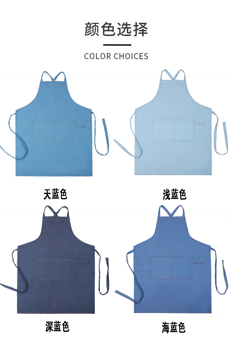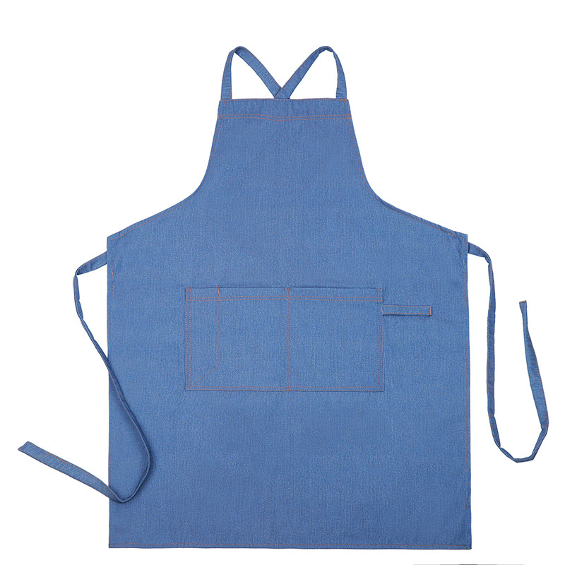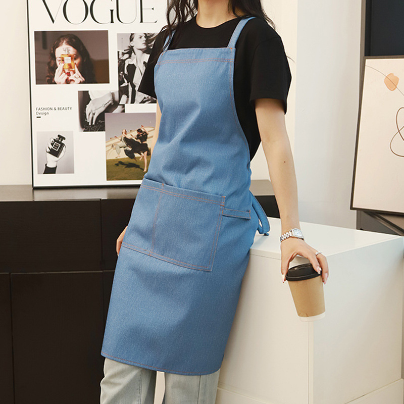 공장 도매 높은 색상 가치 얼룩 방지 데님 앞치마 부엌 우유 차 가게 카페 가정 작업 앞치마 인쇄