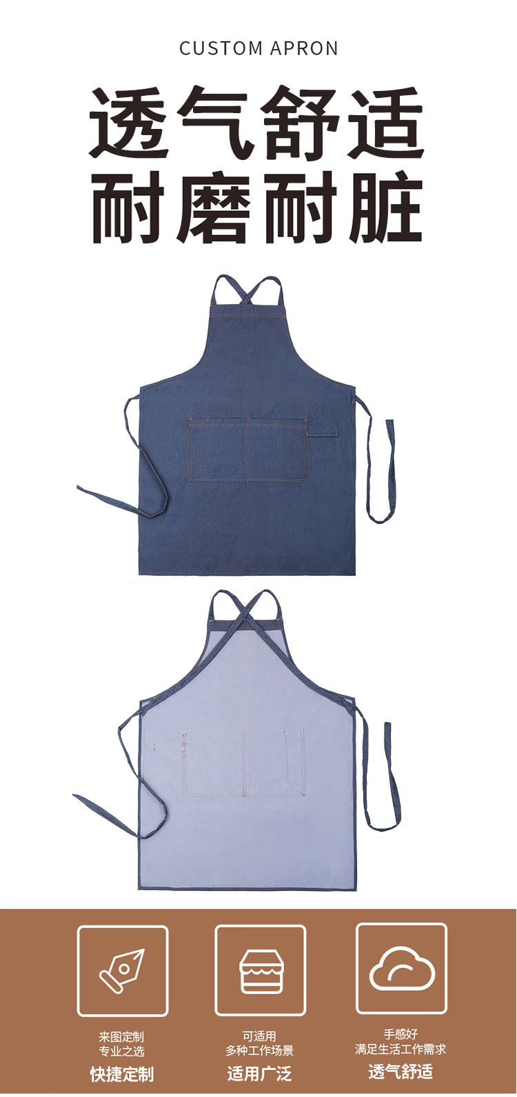 本厂是专业生产围裙20年的工厂,有着丰富的生产,定制经验,日产量8000+ 全套的生产设备,定制印字刺绣一站式服务 。 来样定制,代加工,一件代发,满足多样需求 跨境电商专属:opp包装,装箱,贴标等服务。 让您售后无忧,快速响应,贴心服务一路相伴