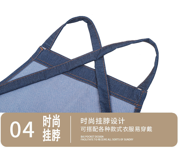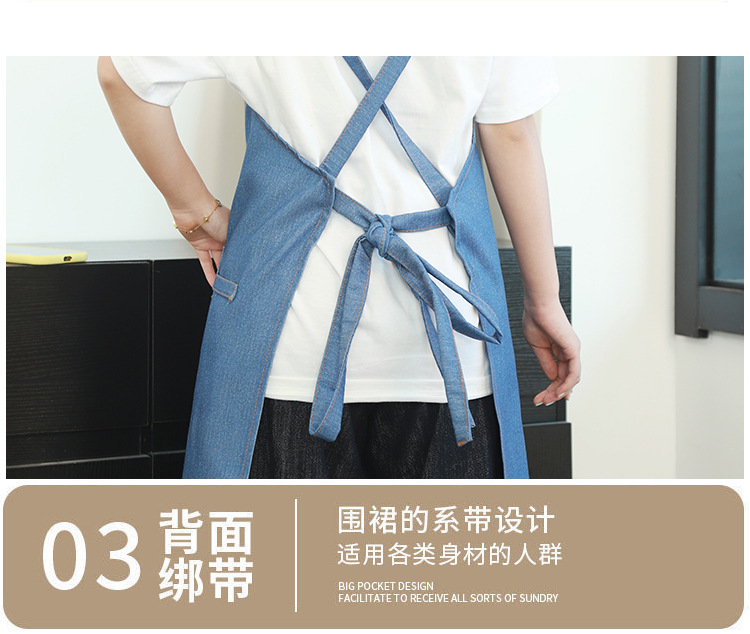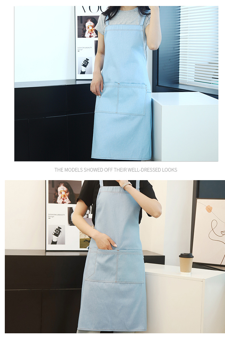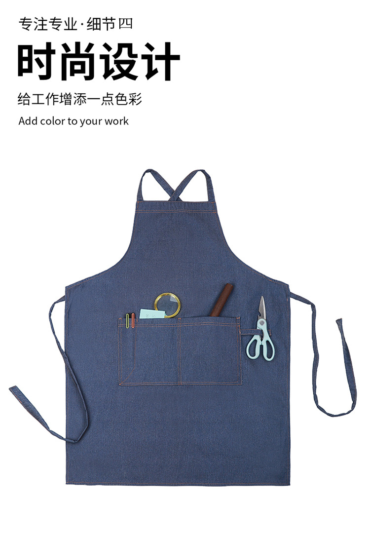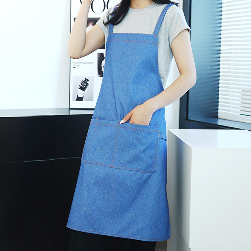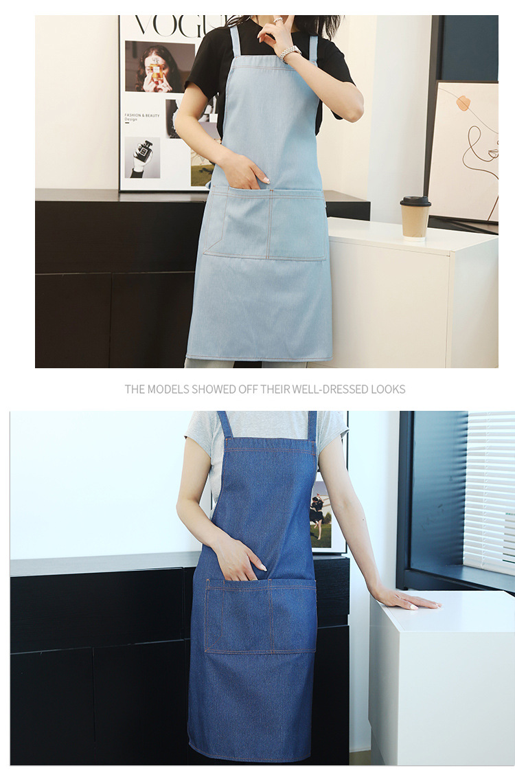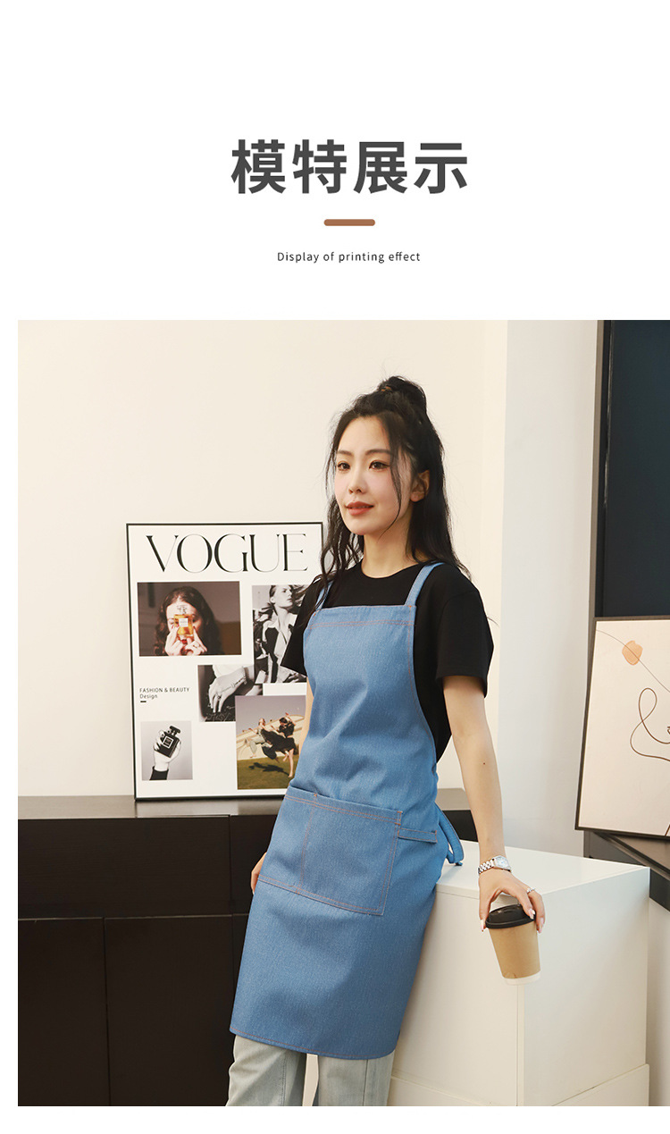 공장 도매 높은 색상 가치 얼룩 방지 데님 앞치마 부엌 우유 차 가게 카페 가정 작업 앞치마 인쇄스토어 가기