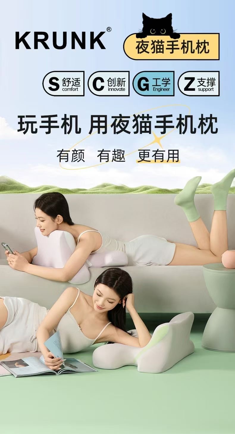 KRUNK 밤 고양이 휴대 전화 베개 느린 리바운드 메모리 베개 침대 머리 릴리프 자궁 경부 베개스토어 가기
