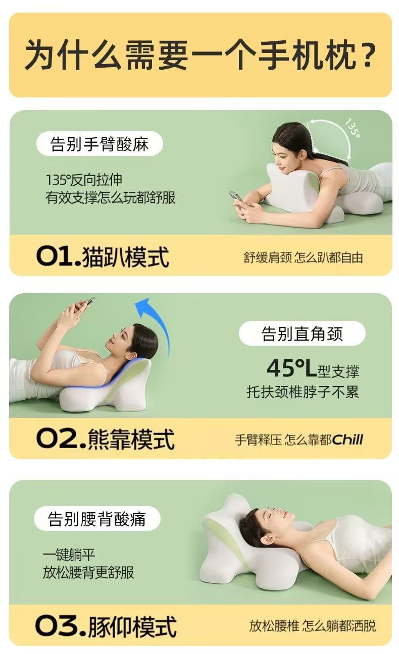 KRUNK 밤 고양이 휴대 전화 베개 느린 리바운드 메모리 베개 침대 머리 릴리프 자궁 경부 베개