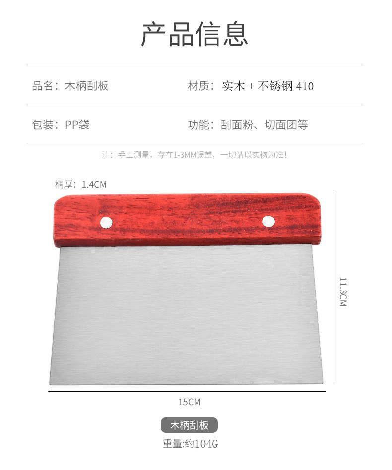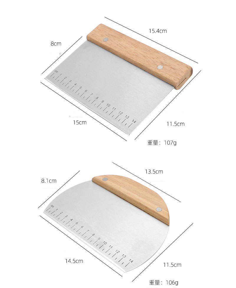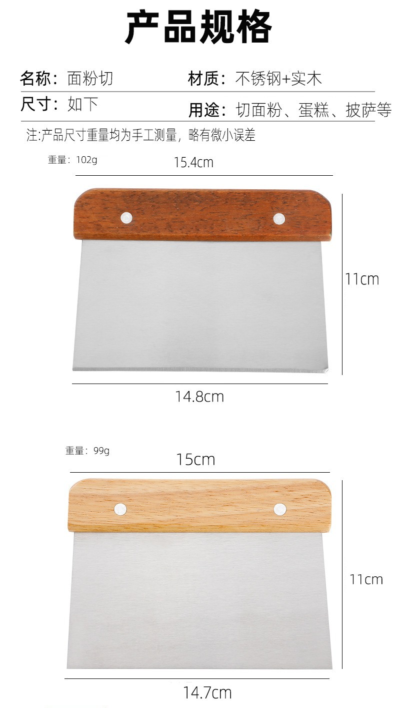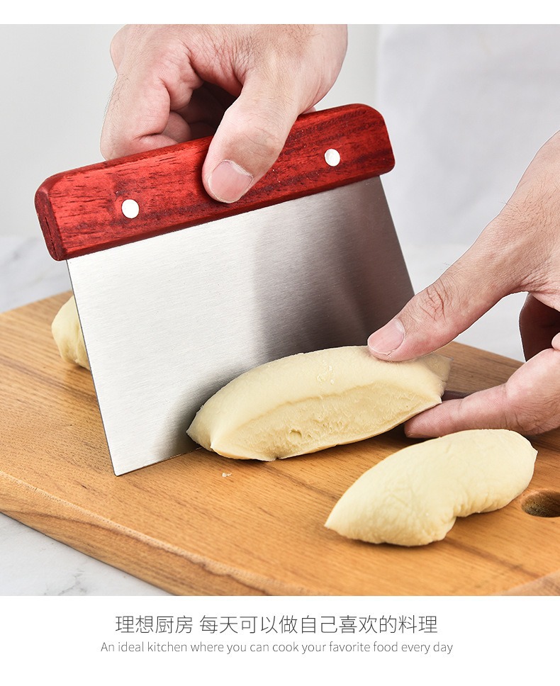 스테인레스 스틸 나무 손잡이 가정용 국수 커터 쌀 그릇 반죽 스크레이퍼 밀가루 팬케이크 쌀 그릇 스크레이퍼 베이킹 도구