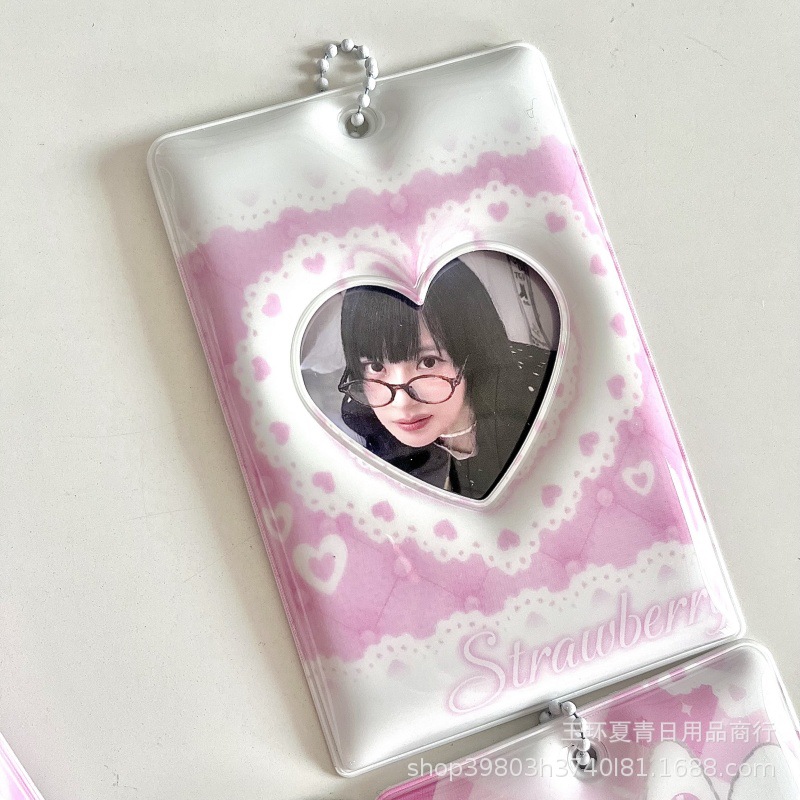 원래 핑크 날개 외부 그물 바람 날개 플랫 탑 카드 홀더 사진 카드 펜던트 키 링 카드 홀더