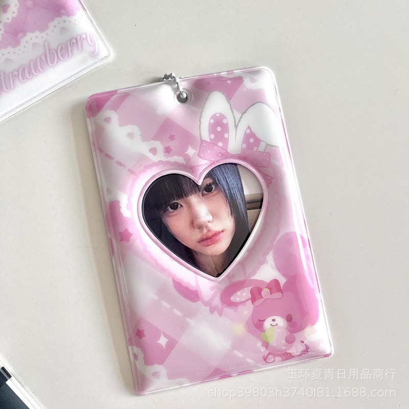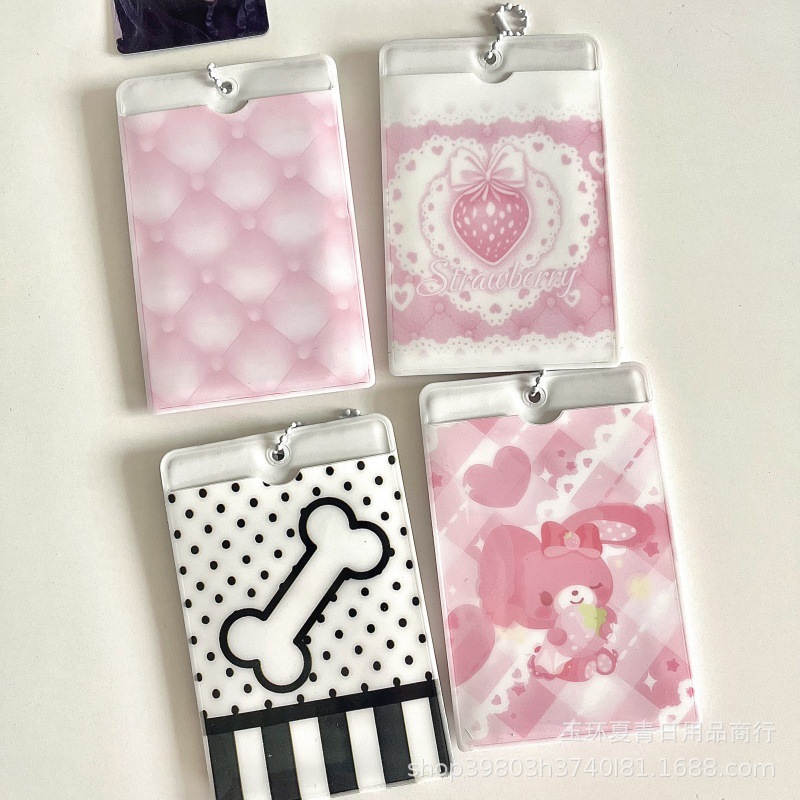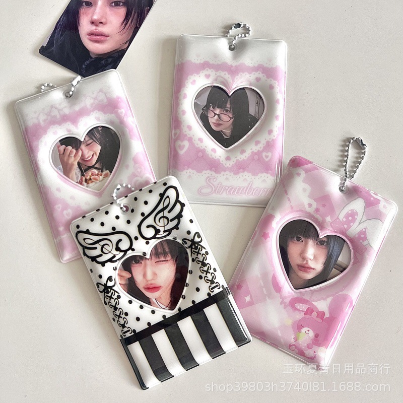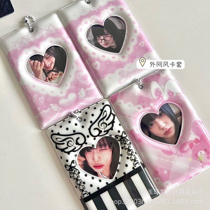 원래 핑크 날개 외부 그물 바람 날개 플랫 탑 카드 홀더 사진 카드 펜던트 키 링 카드 홀더스토어 가기