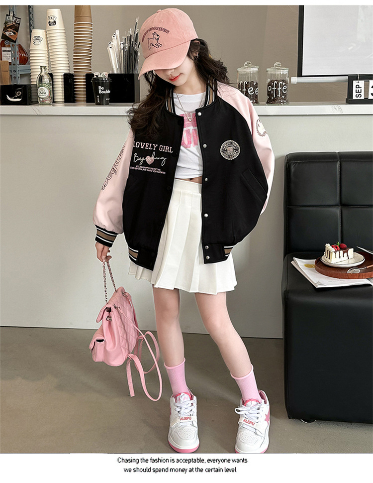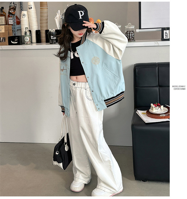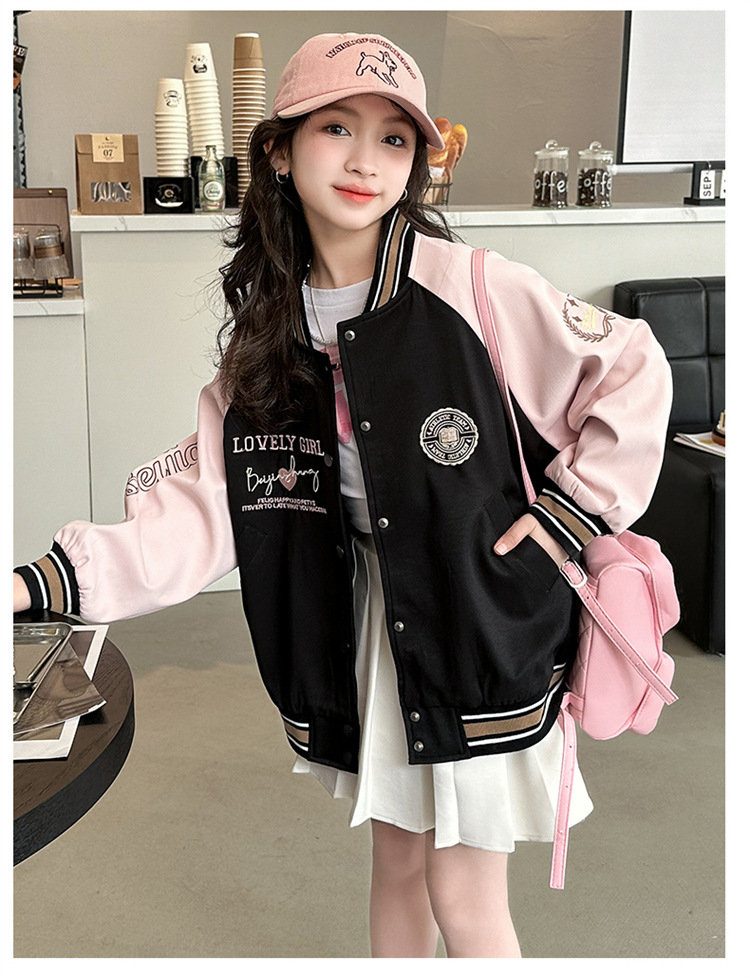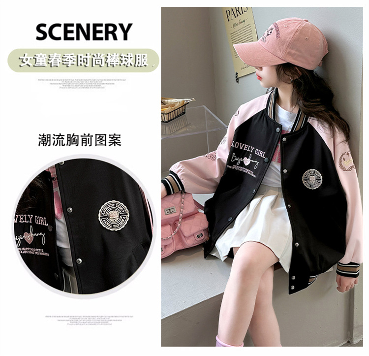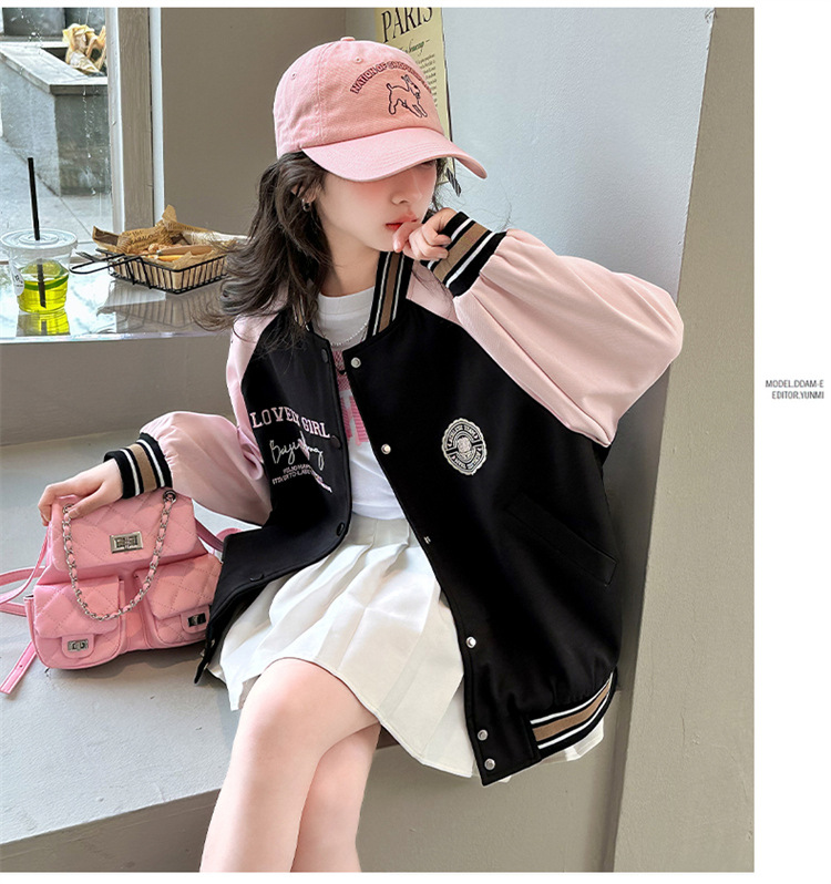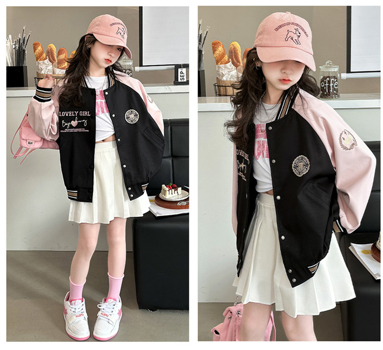 여아 코트 가을 2025 신작 봄, 가을 여아 스타일 카디건 재킷 중대형 아동복 야구 유니폼 탑 트렌디