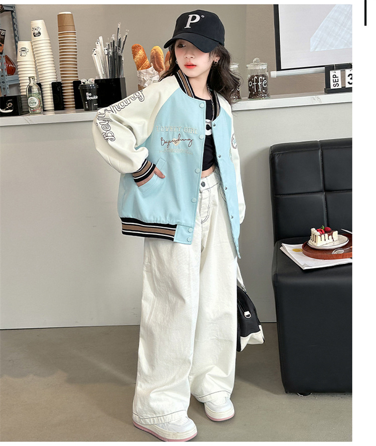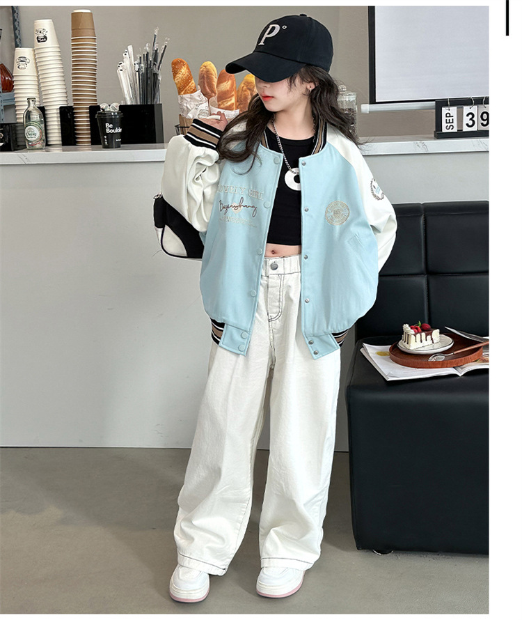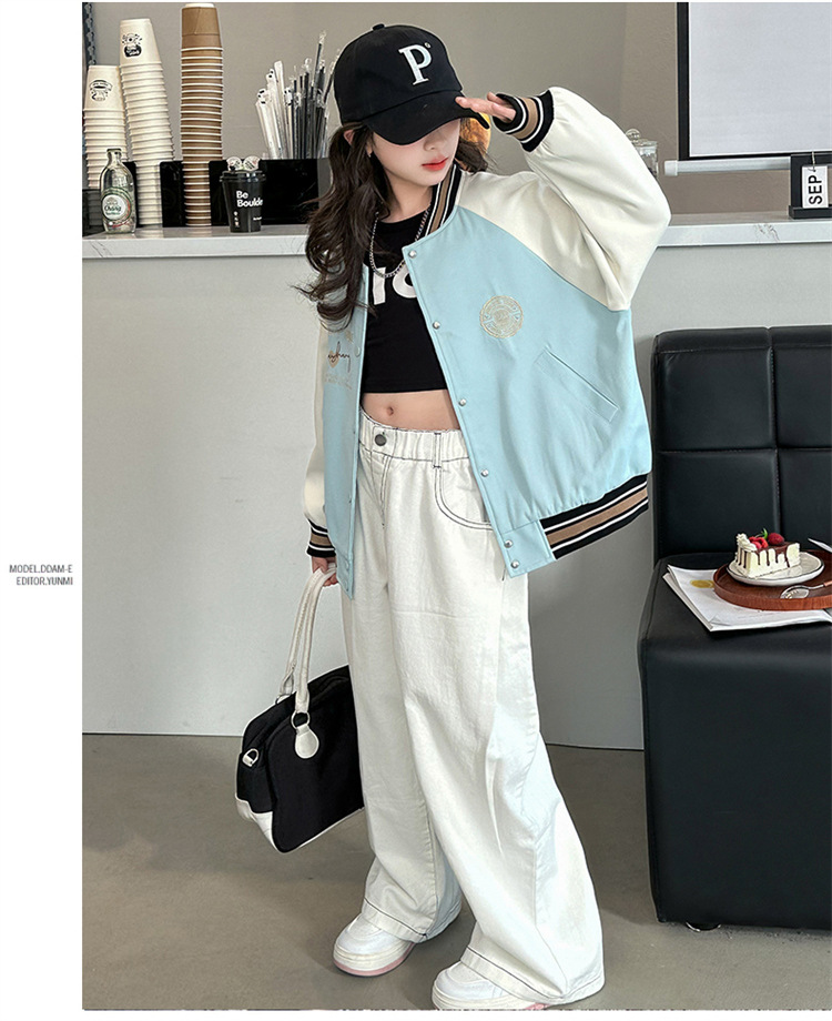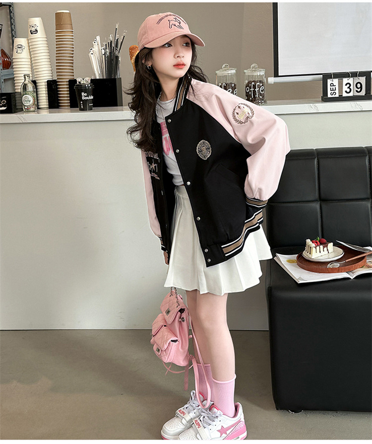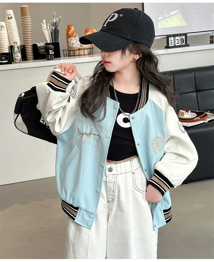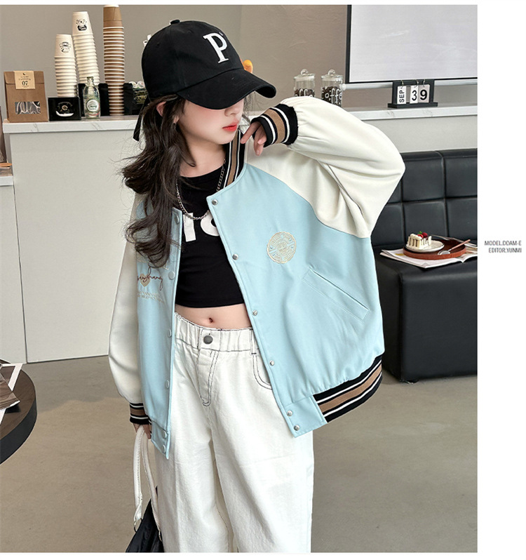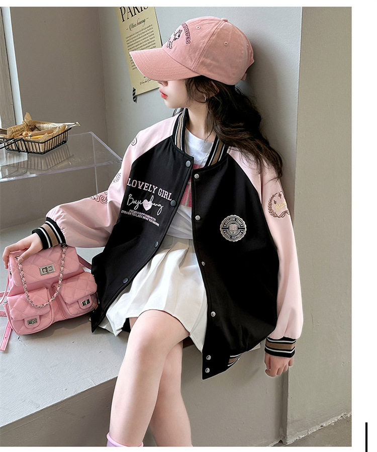 여아 코트 가을 2025 신작 봄, 가을 여아 스타일 카디건 재킷 중대형 아동복 야구 유니폼 탑 트렌디스토어 가기
