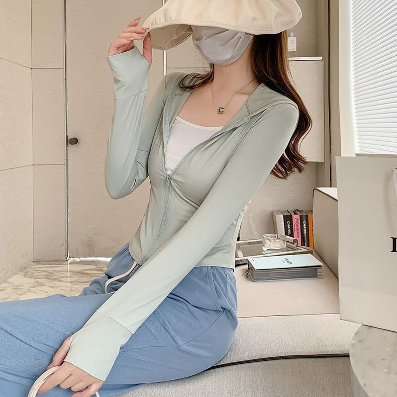 UPF50 요가 선 스크린 의류 여성 외부 착용 UV 보호 재킷 여름 투명