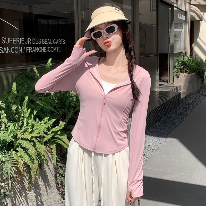 UPF50 요가 선 스크린 의류 여성 외부 착용 UV 보호 재킷 여름 투명스토어 가기