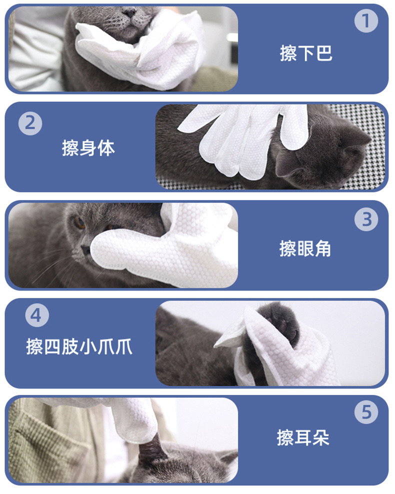 애완동물 일회용 장갑 물티슈 일회용 닦기 유물 고양이와 개를 위한 범용 청소 및 미용 물티슈