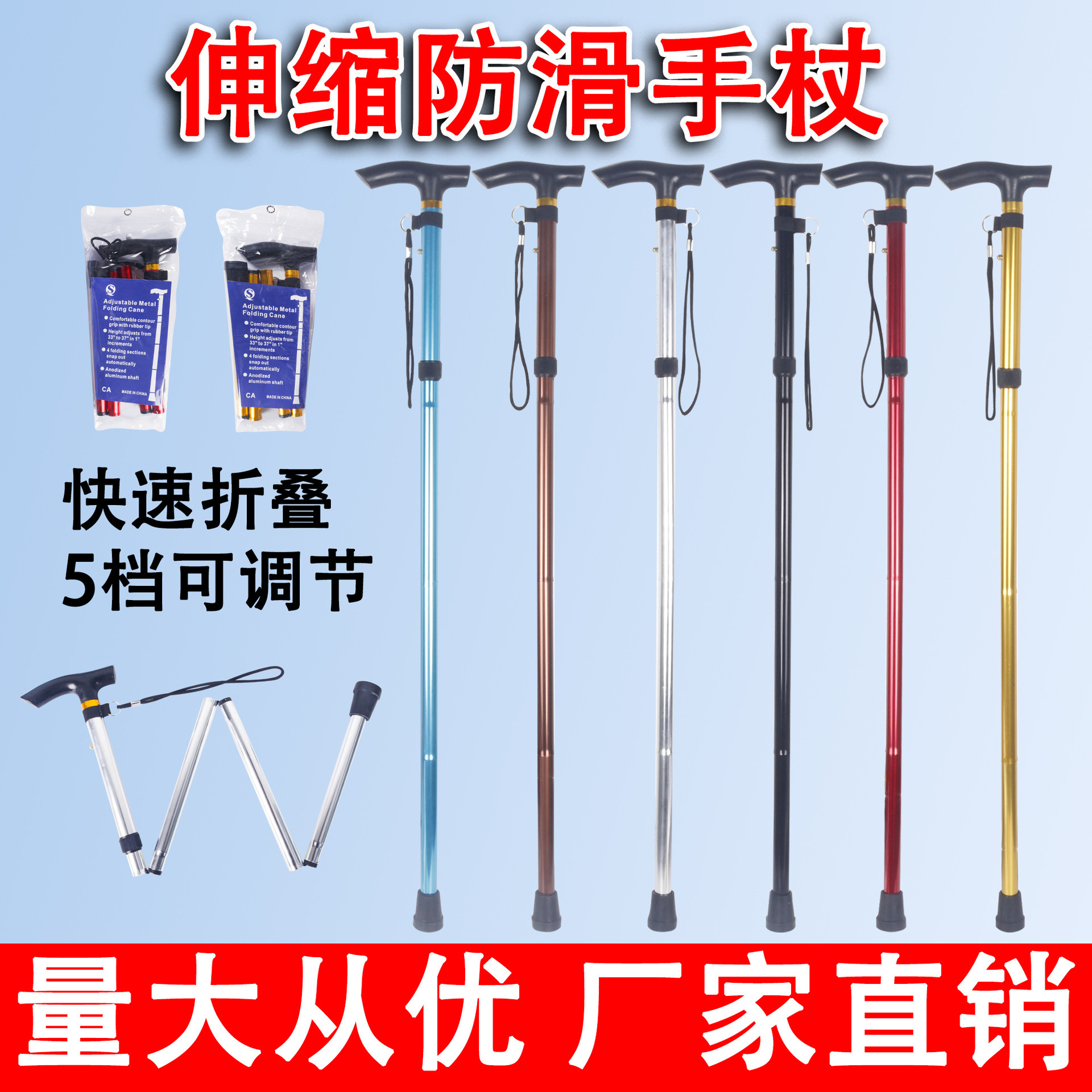 야외 5단 지팡이 도매 여행 지팡이 텔레스코픽 등산 접이식 국경 간 공장 노인 지팡이 등산스토어 가기