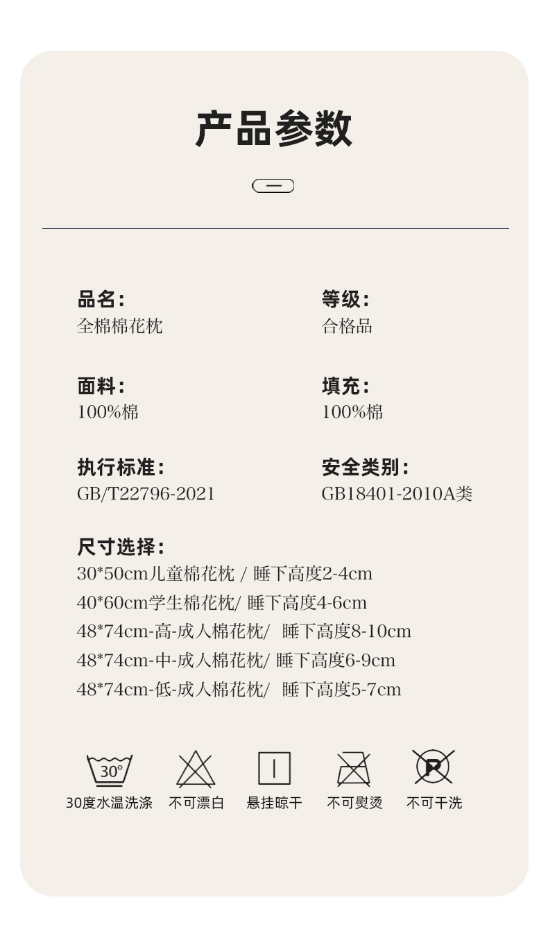 • 성인용 면 베개 48*74cm/개(7-9cm 잠자기)