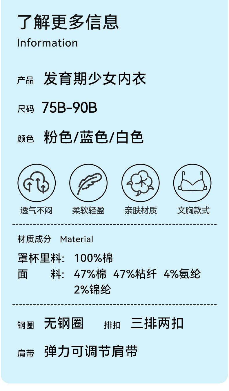여아 속옷, 청소년 발달기, 고등학생, 중학생, 푸쉬업 조끼, 얇고 통기성이 좋은 스포츠 브라, 편안함스토어 가기