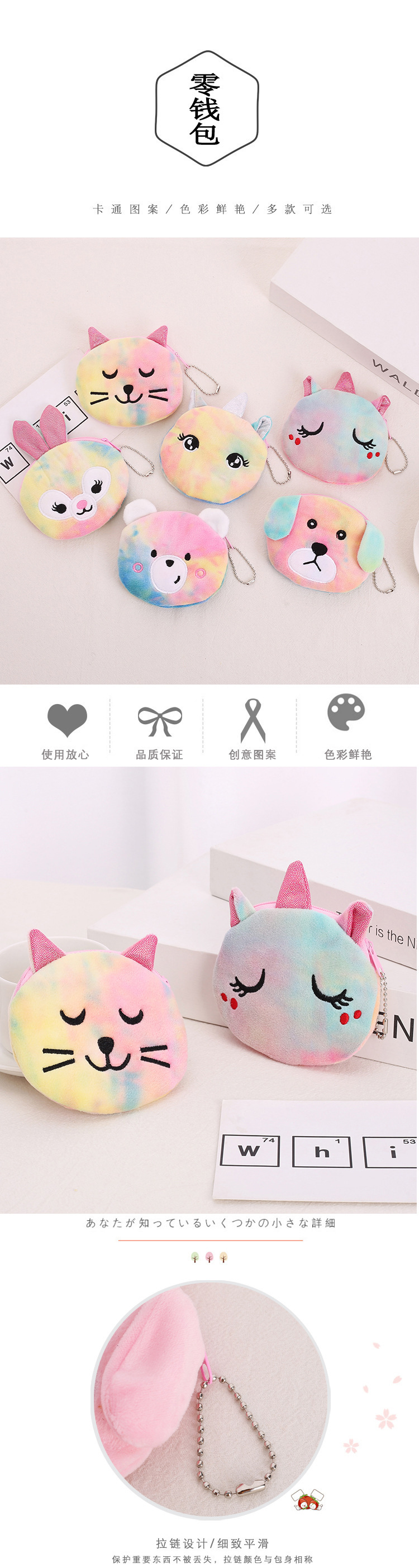 새로운 Ins 만화 유니콘 다채로운 레이저 타이-염료 패션 작은 귀여운 여성 학생 휴대용 동전 지갑스토어 가기