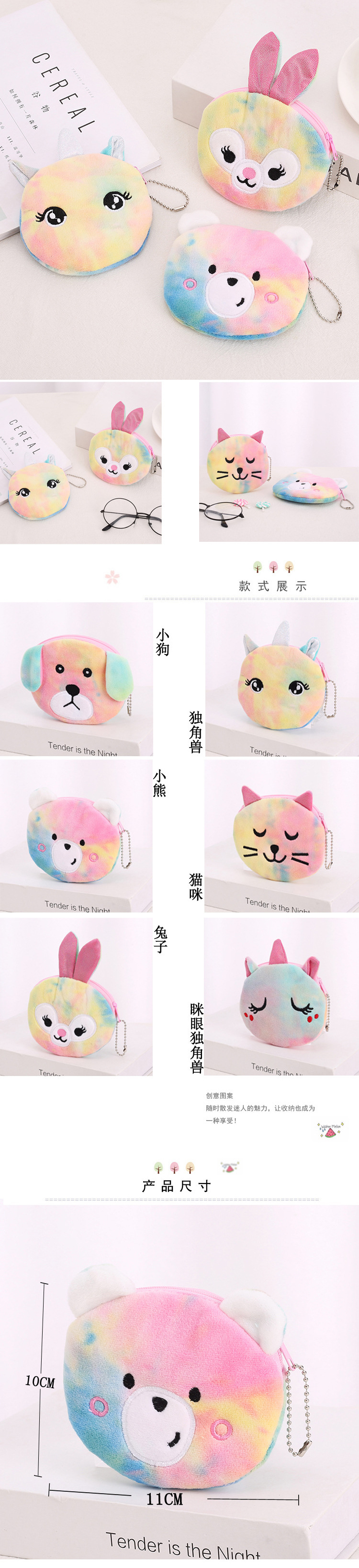 새로운 Ins 만화 유니콘 다채로운 레이저 타이-염료 패션 작은 귀여운 여성 학생 휴대용 동전 지갑