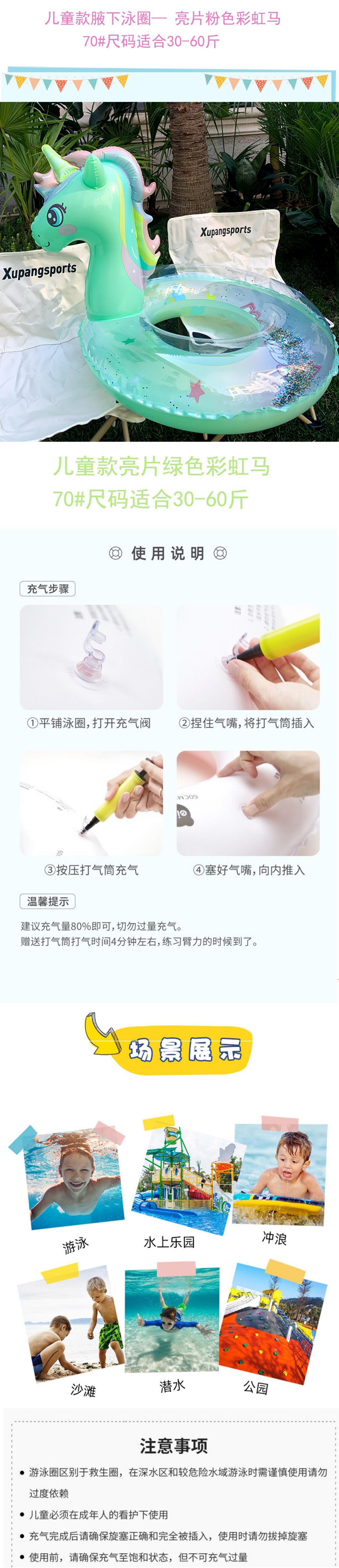 아기 두꺼운 스팽글 무지개 말 어린이 앉아 수영 반지 소녀 좌석 풍선 부모-자식 겨드랑이 반지