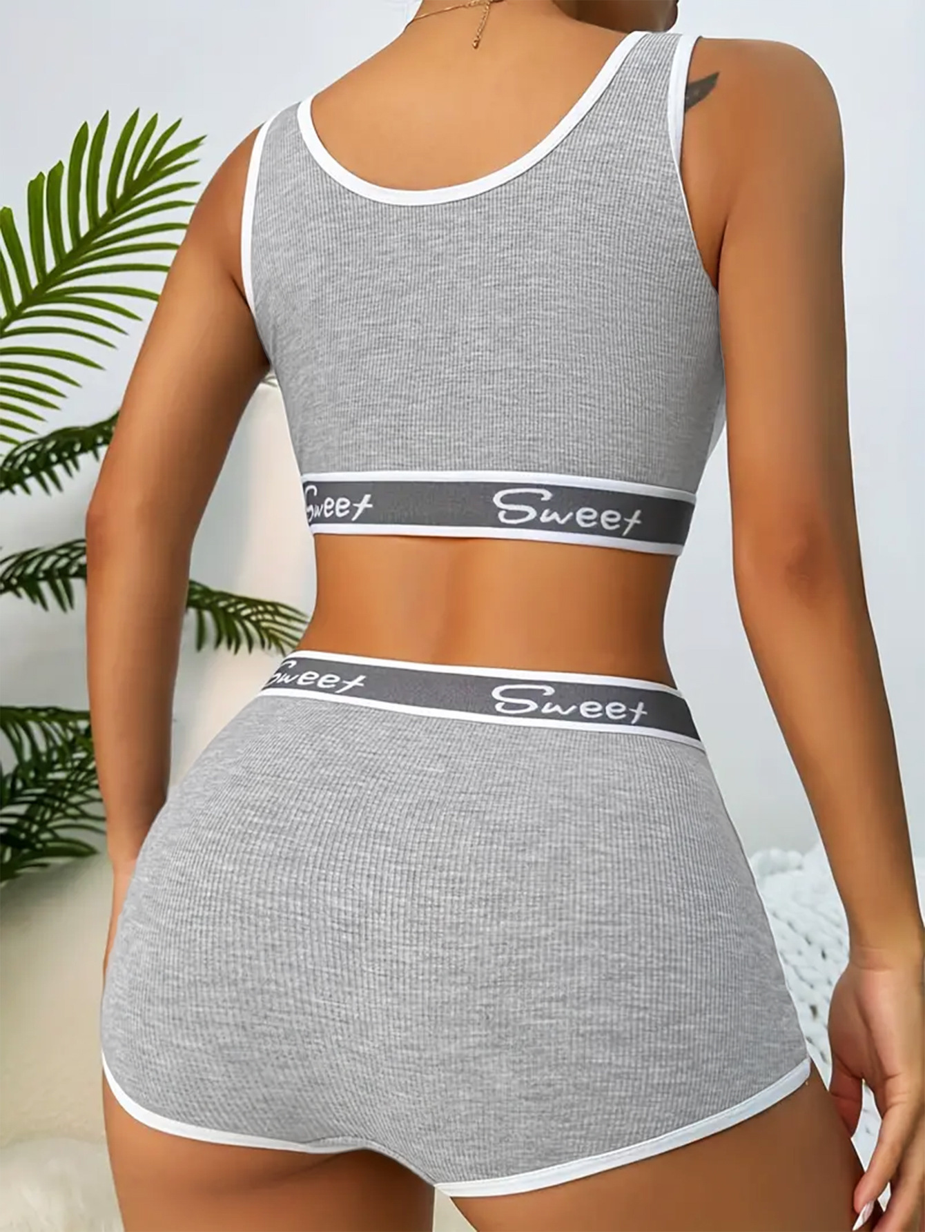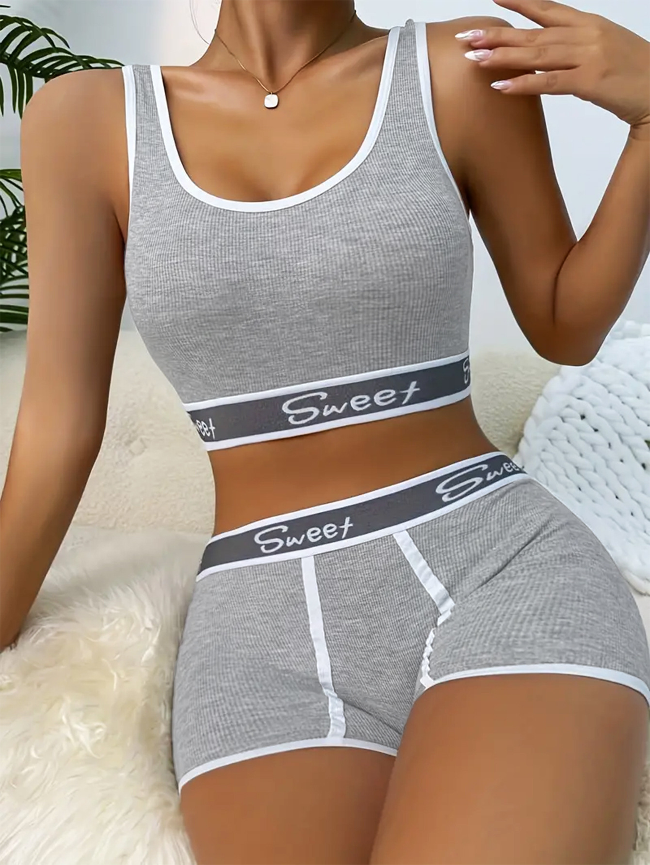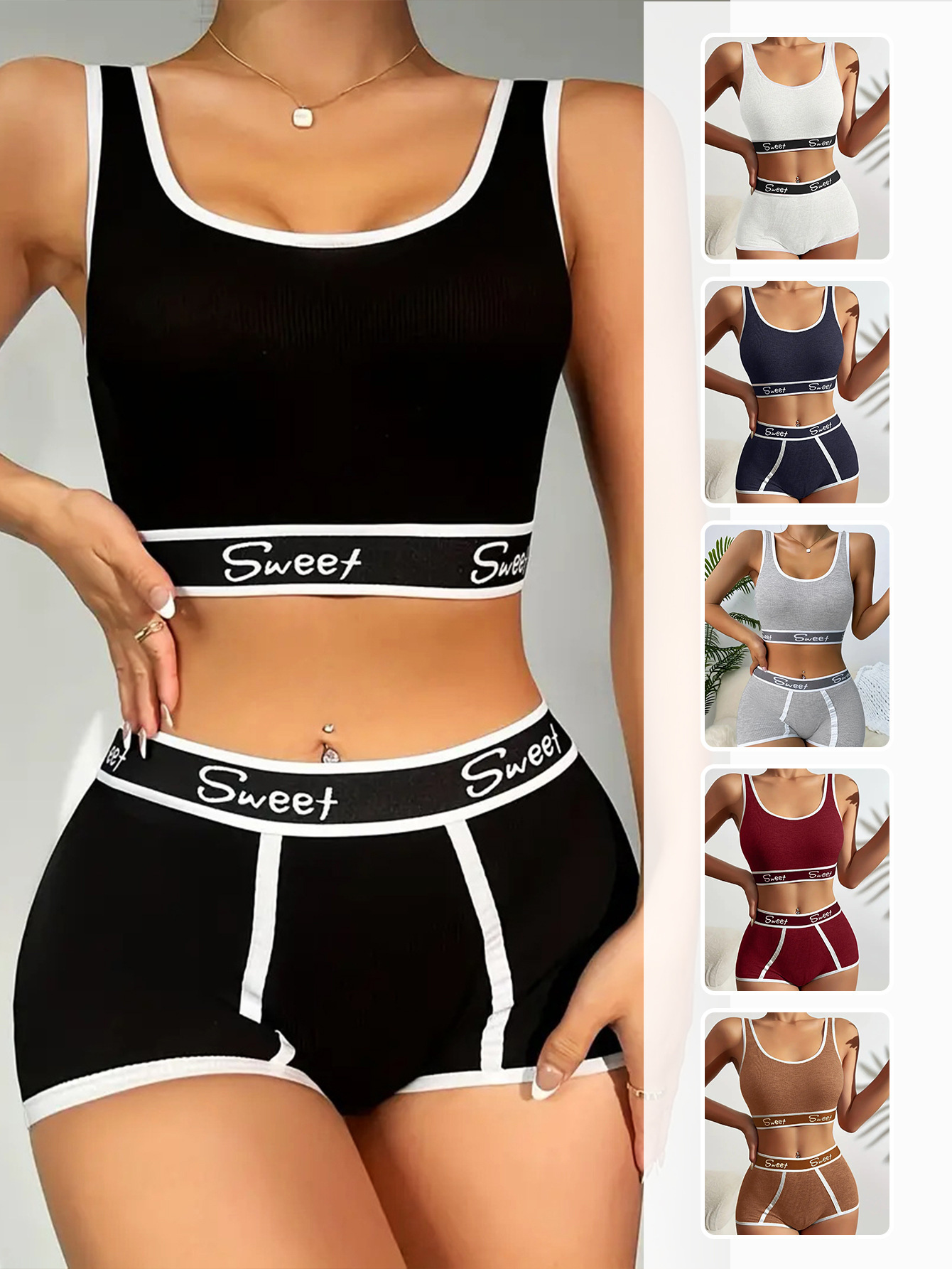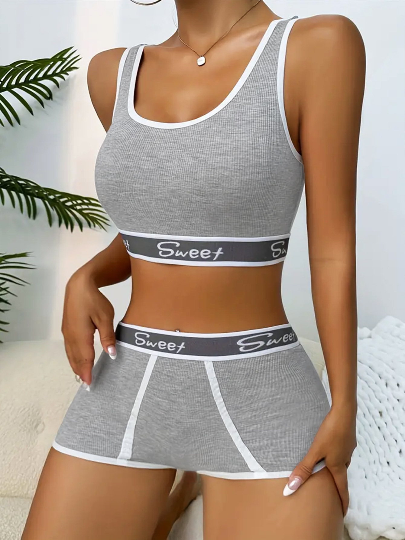 국경을 넘는 유럽과 미국의 AliExpress Spice Girls의 피트니스 속옷 코튼 와이드 브릭터 미드 웨이스트 걸스 스포츠 속옷 세트