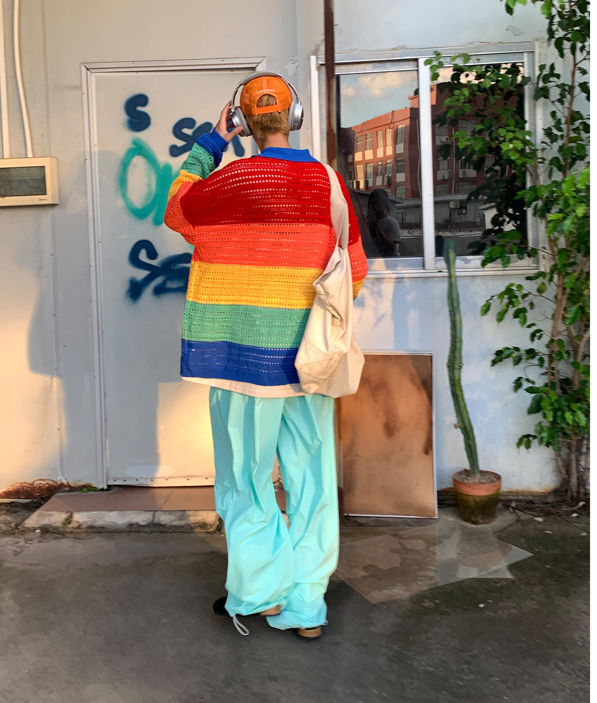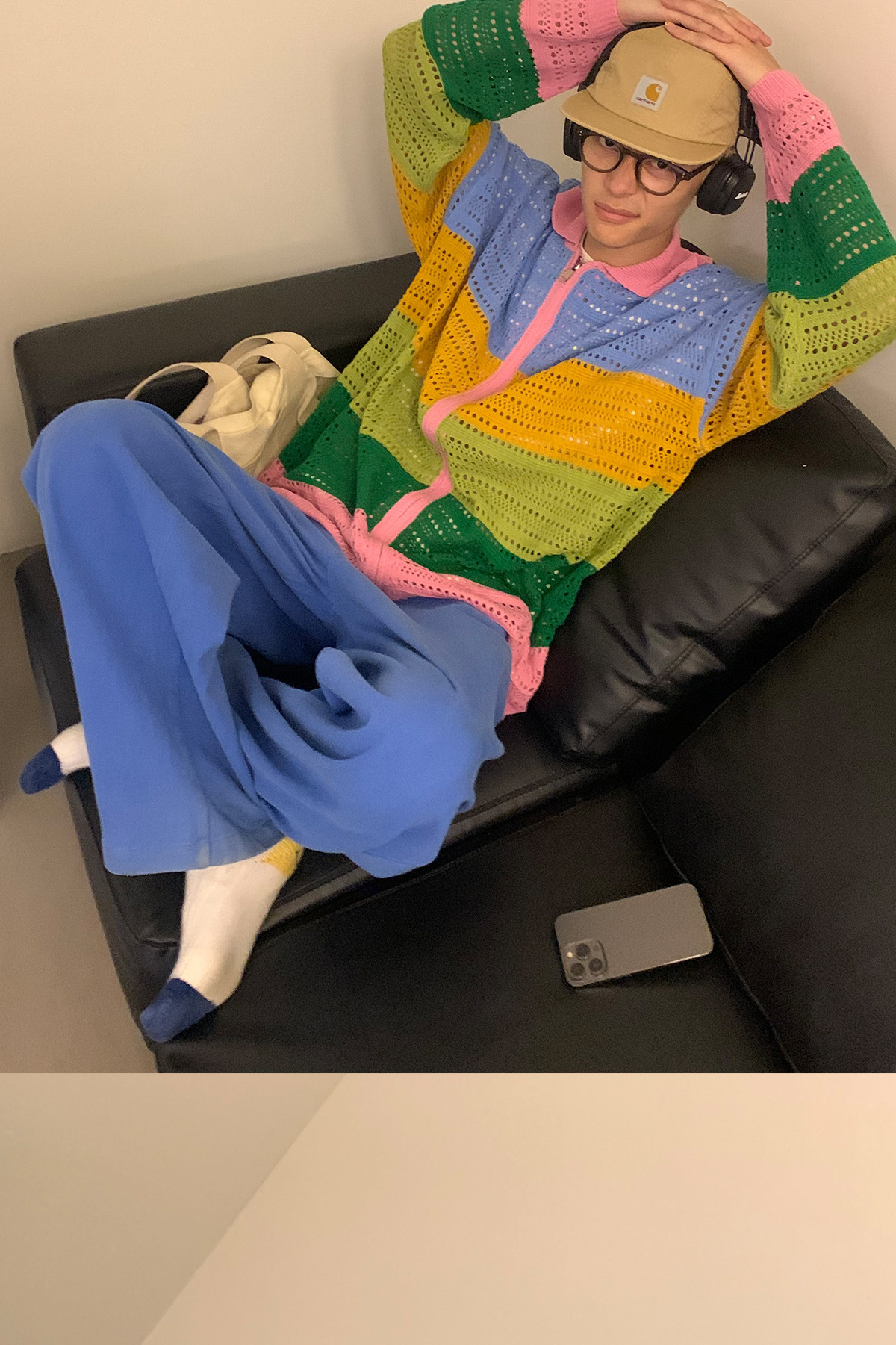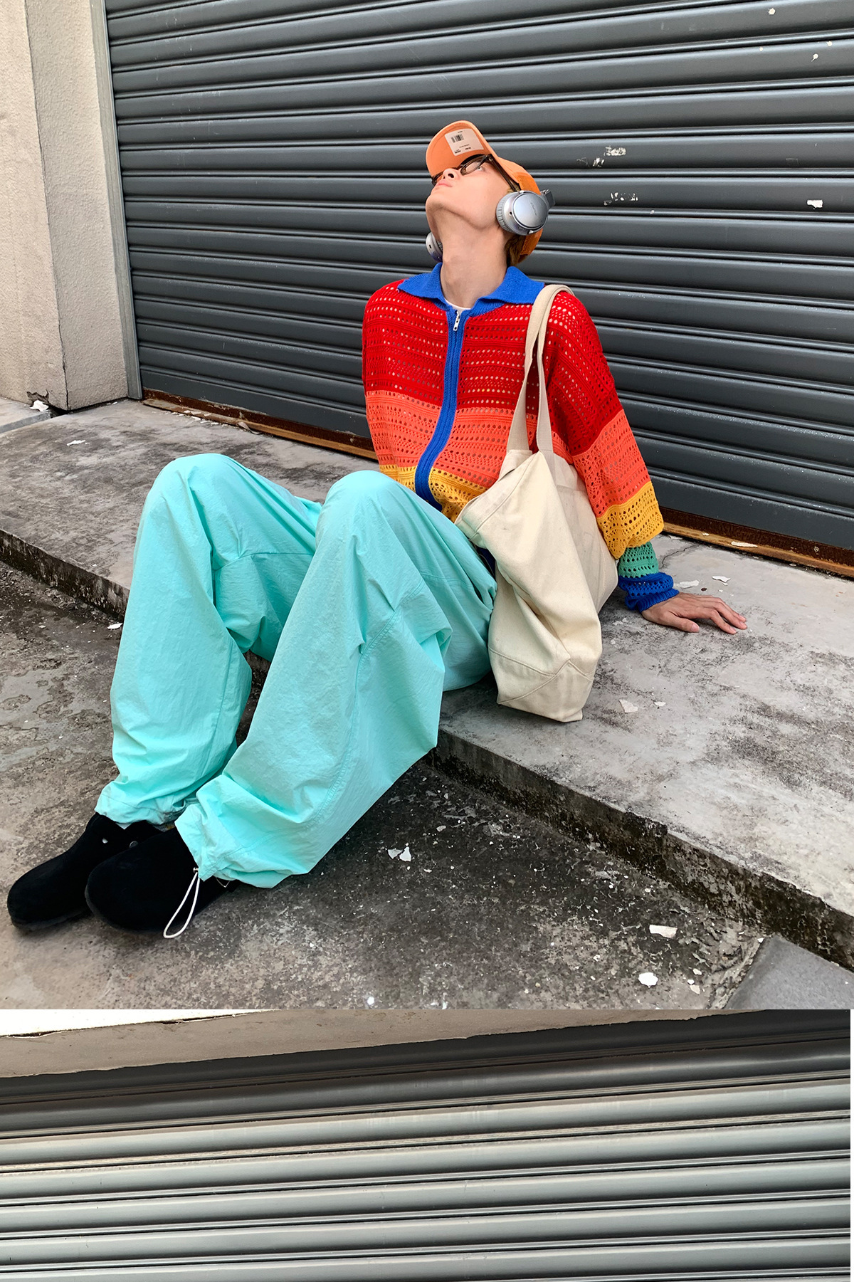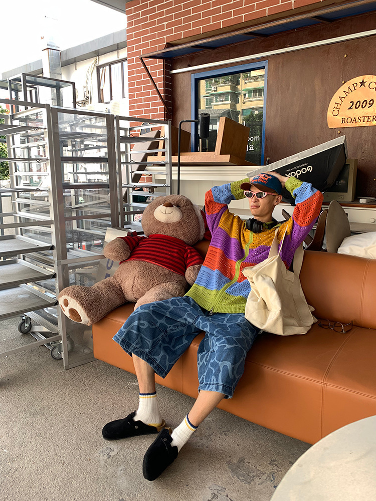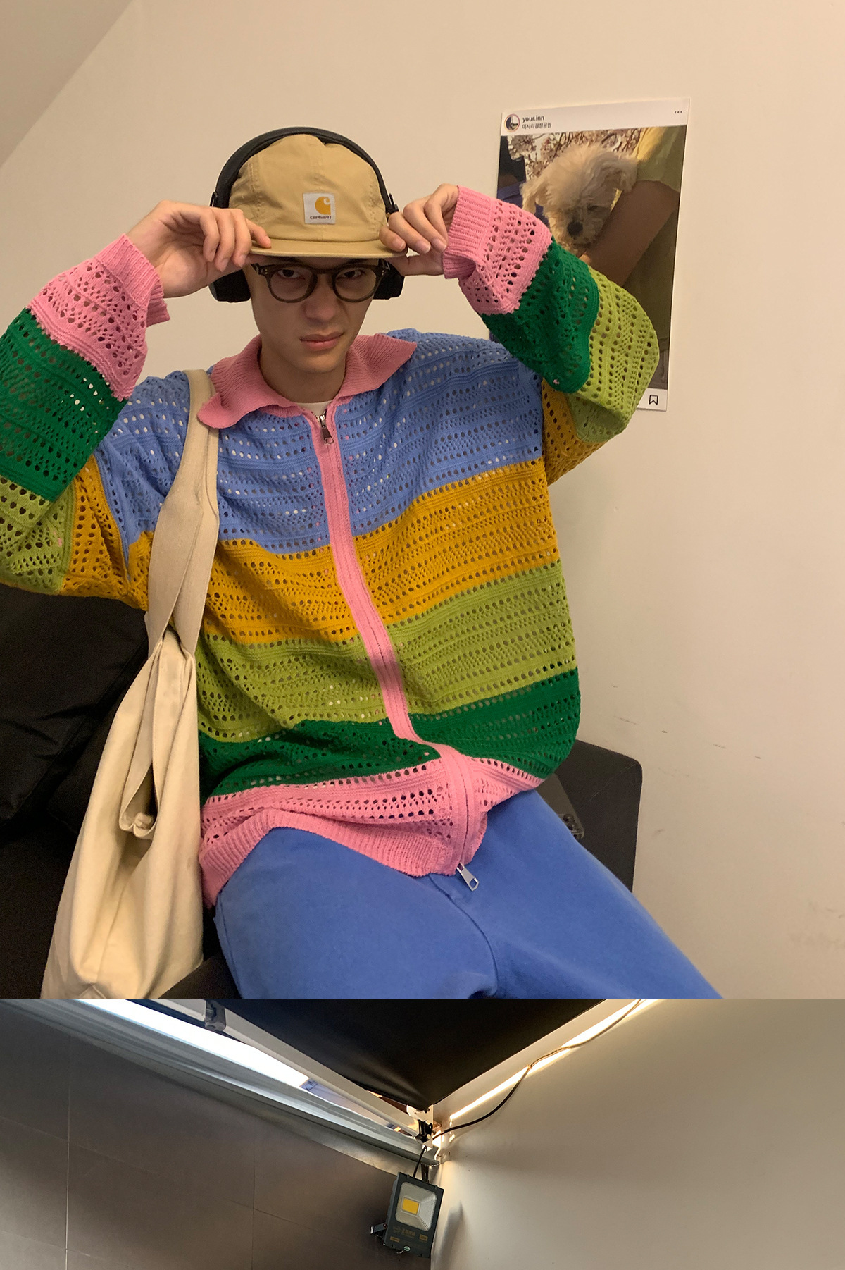 컬러 도파민 대비 컬러 스트라이프 할로우 지퍼 니트웨어 남성 봄과 가을 셔츠 스웨터 카디건 코트 탑스토어 가기