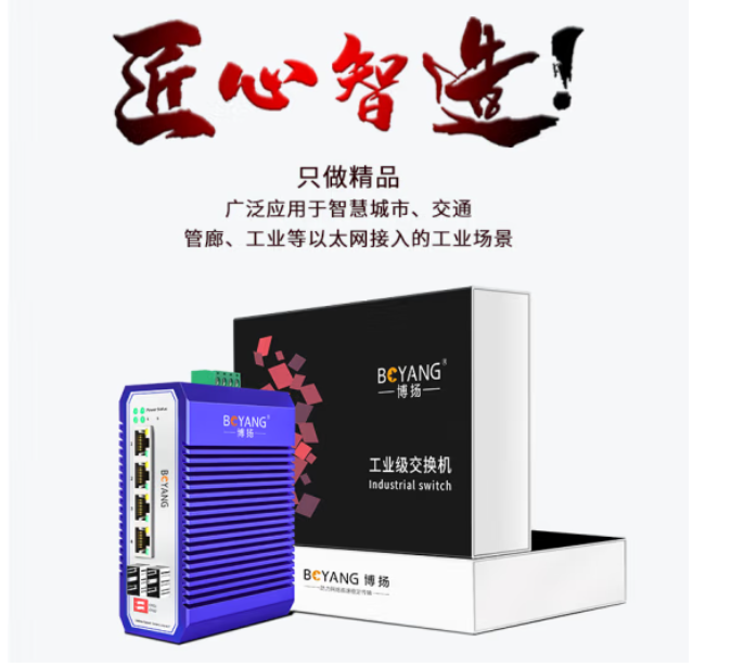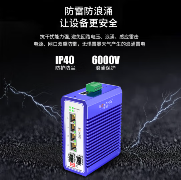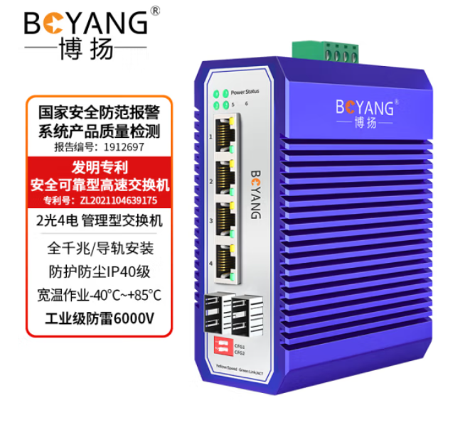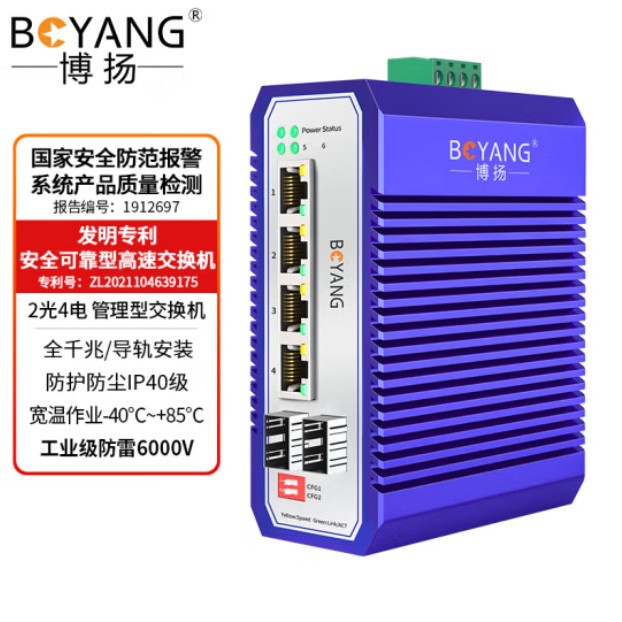 博扬 工业级管理型交换机 二光四电千兆SFP 宽温宽压导轨式VLAN以太网光纤收发器 含电源不含模块BY-ISMG204*1台*合格证*保修卡