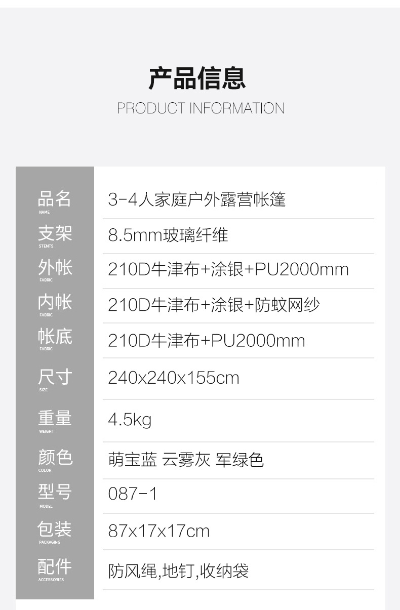 • 네 모퉁이 대형 클라우드 그레이 텐트 + 방습 매트