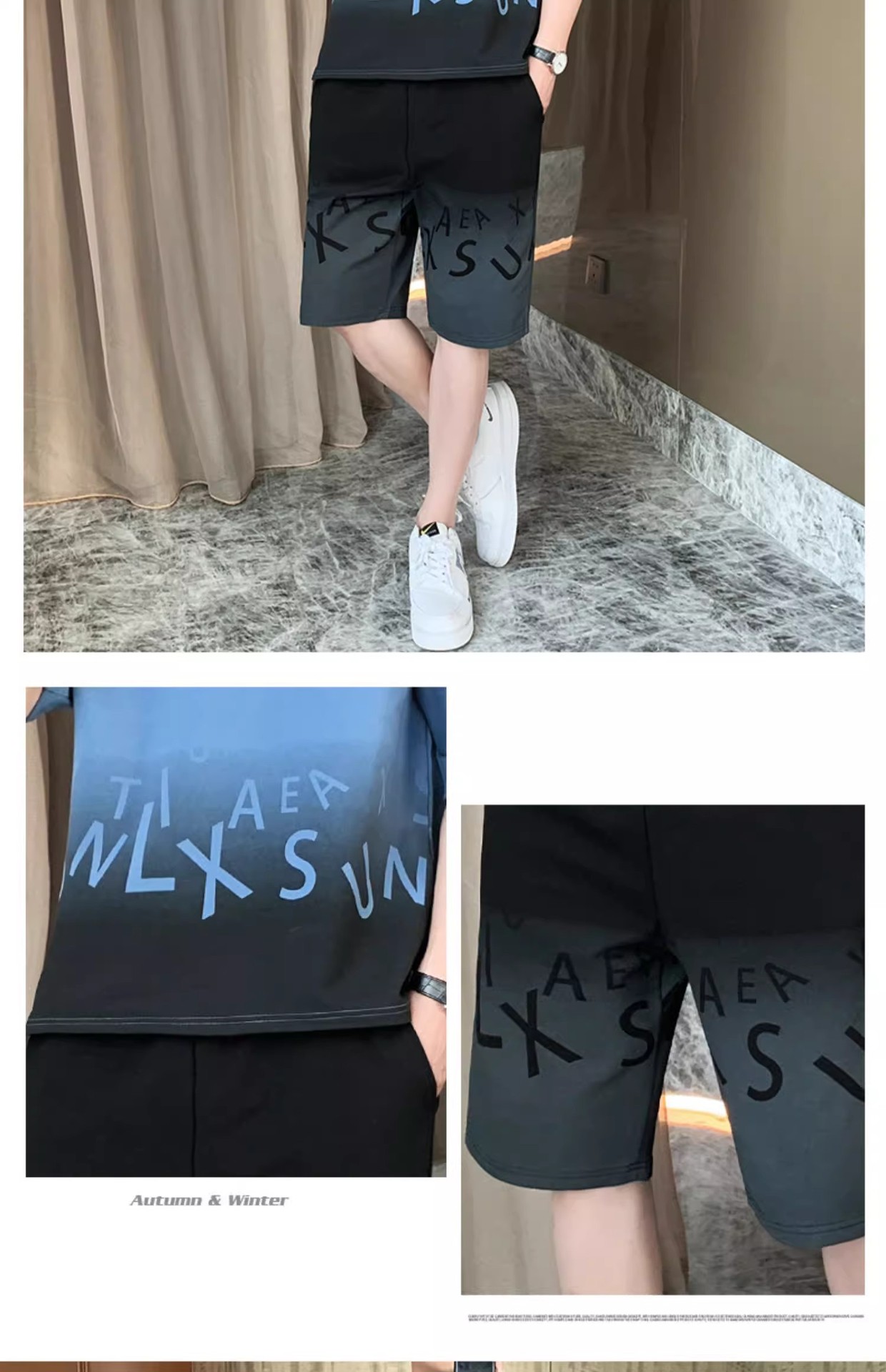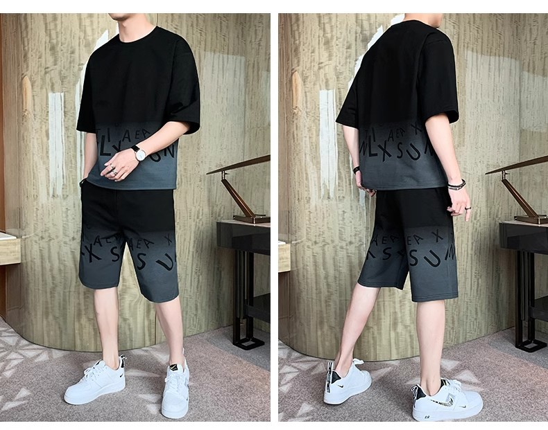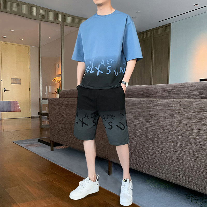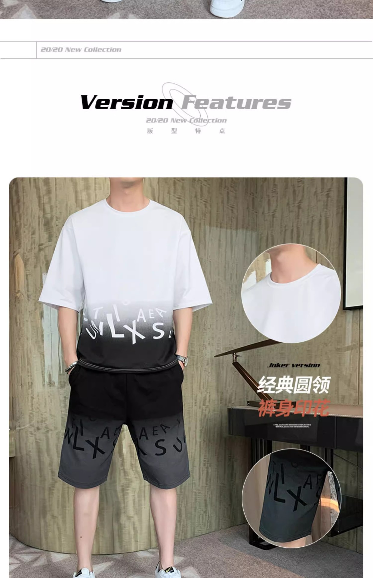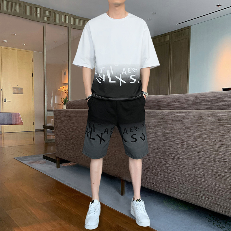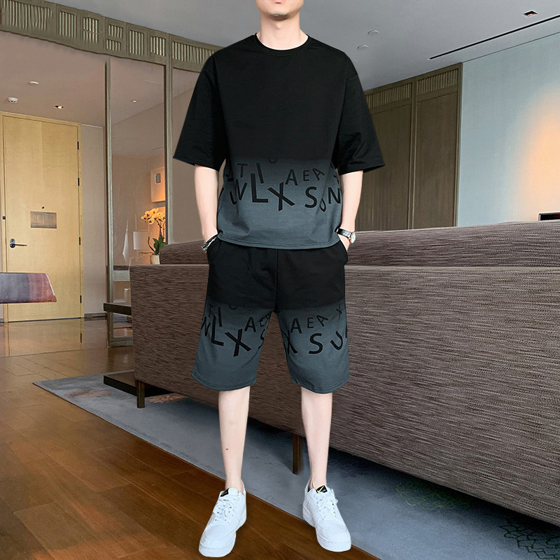 잘 생긴 러피 잘 생긴 프라이드 스트리트 여름 투피스 의류 트렌디 한 남성복 세트는 가이드 5 점 슬리브 세트 착용합니다.