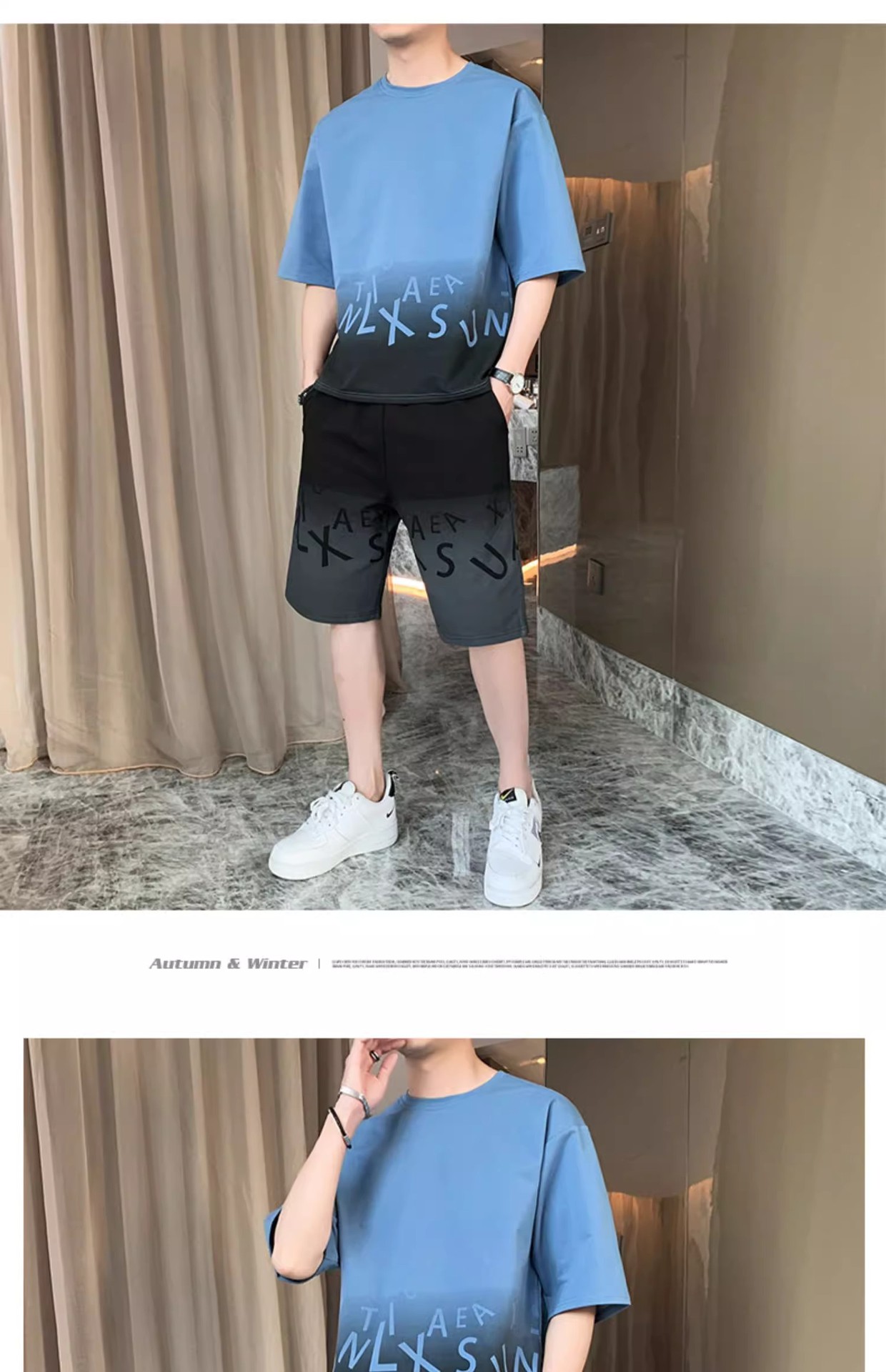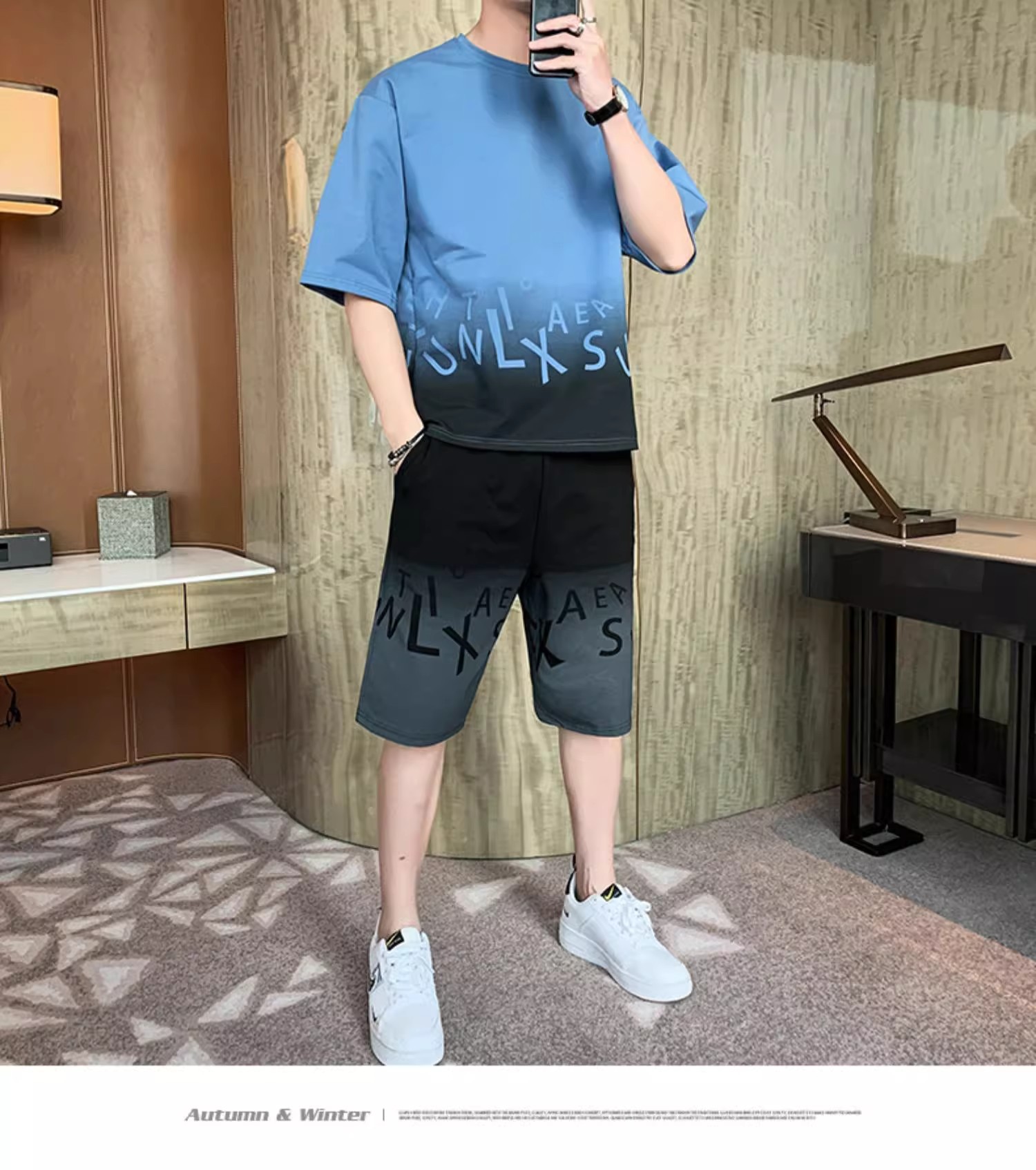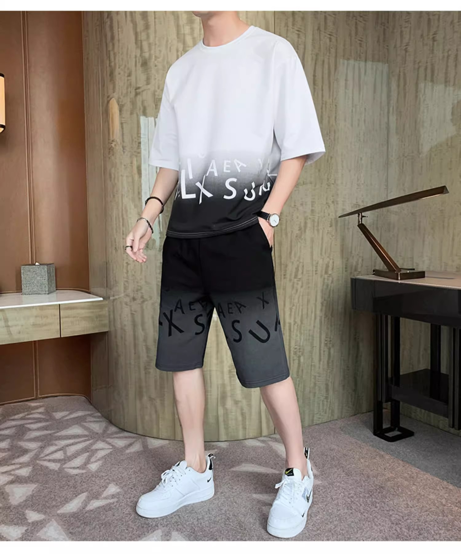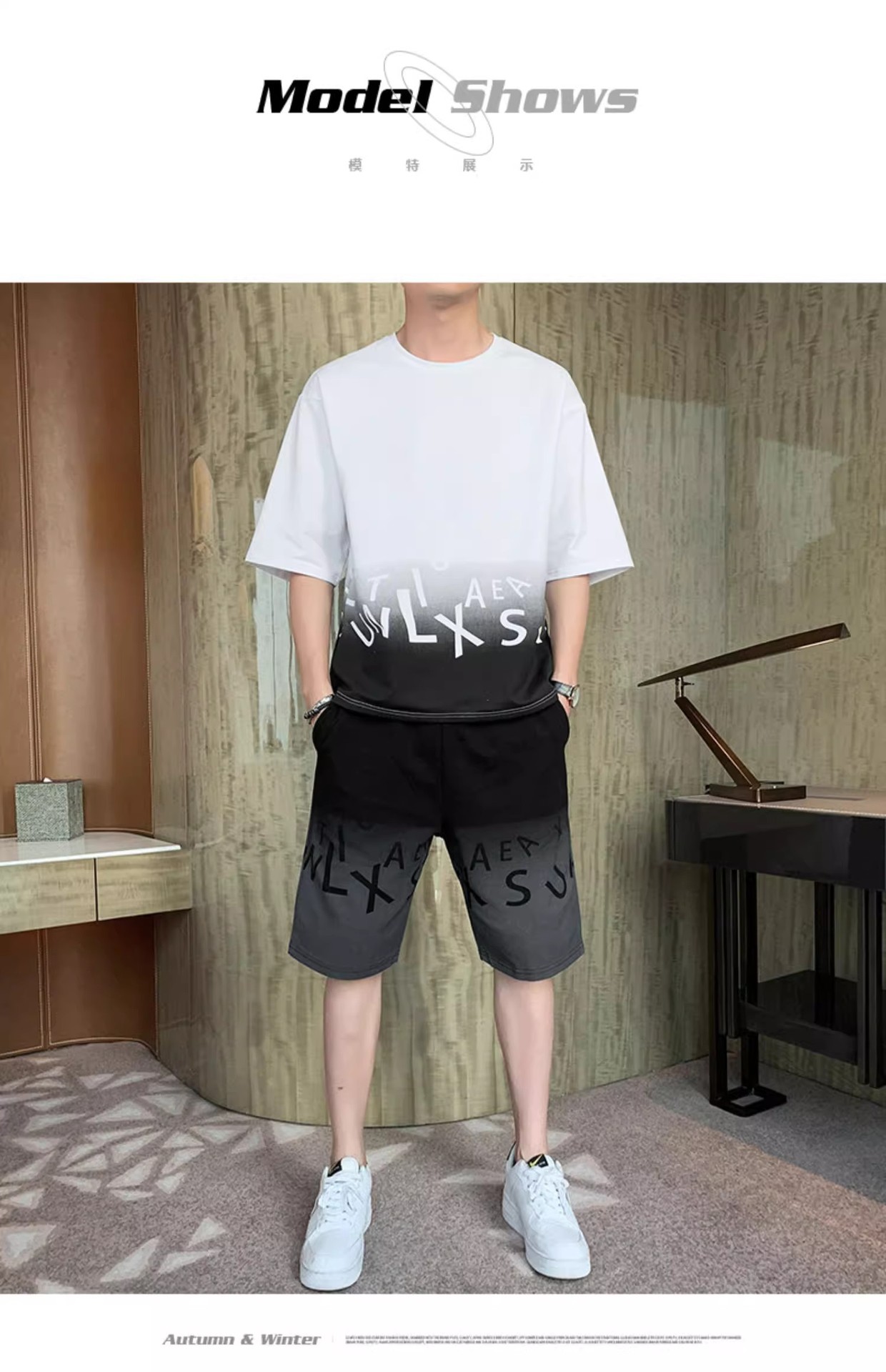 잘 생긴 러피 잘 생긴 프라이드 스트리트 여름 투피스 의류 트렌디 한 남성복 세트는 가이드 5 점 슬리브 세트 착용합니다.