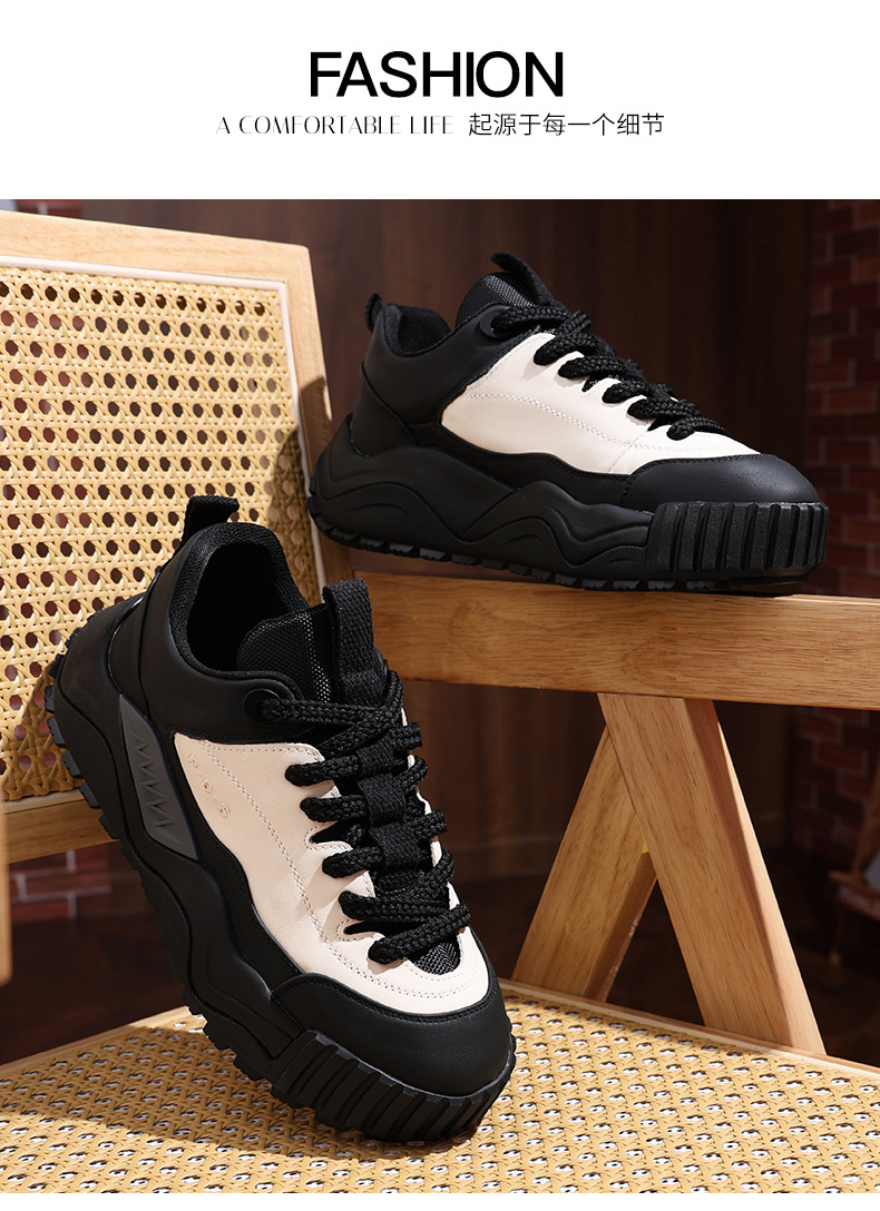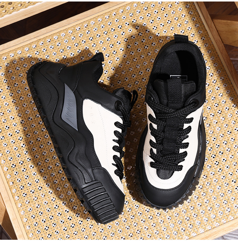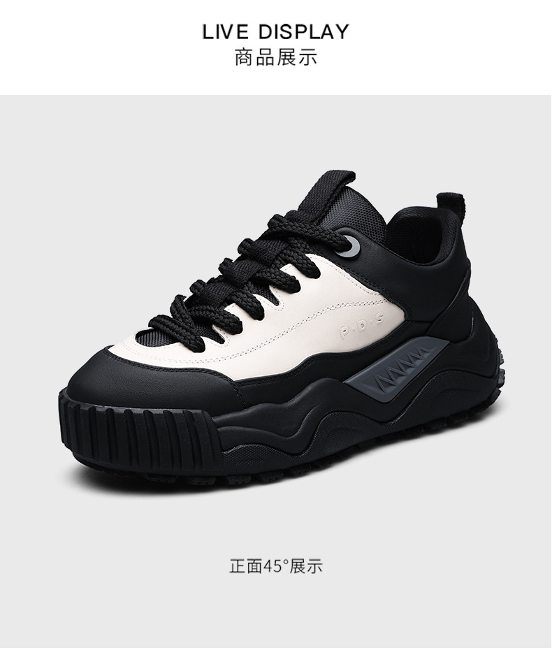 봄, 가을 남성 신발을 공장에서 직접 공급하는 새로운 유럽 스탠드 야외 두꺼운 밑창 높이 증가 가죽 작업복 캐주얼 아빠 신발 유행스토어 가기