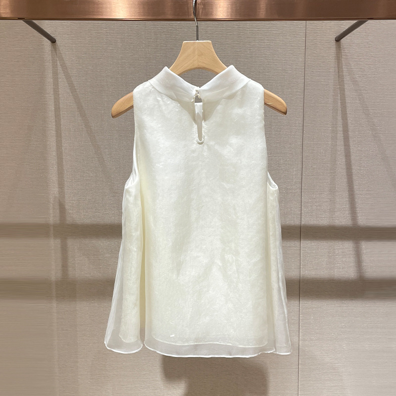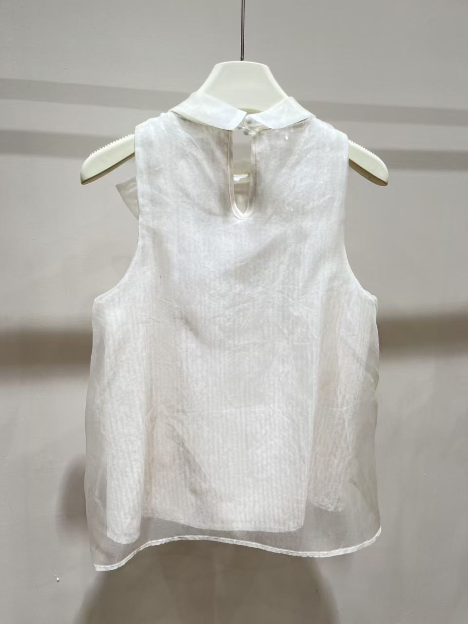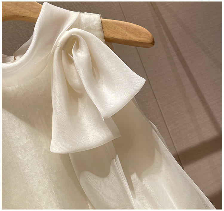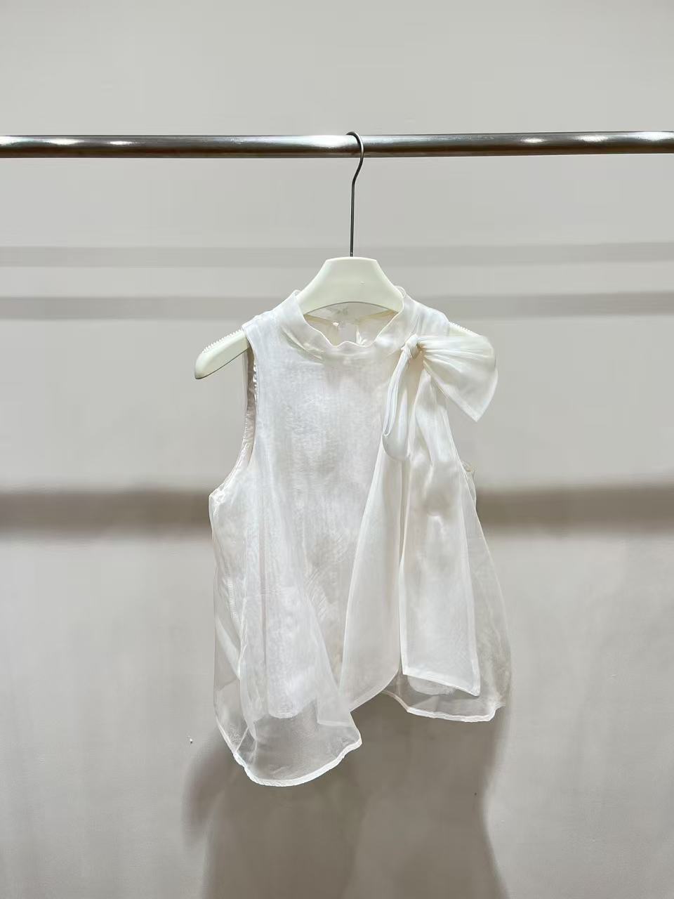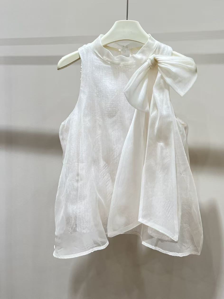 페어리 펄럭이는 탑 2025 봄 새로운 화이트 디자인 센스 보우 세련된 독특한 절묘한 민소매 셔츠스토어 가기