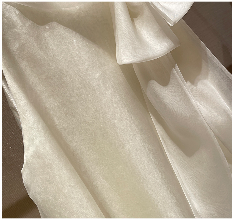 페어리 펄럭이는 탑 2025 봄 새로운 화이트 디자인 센스 보우 세련된 독특한 절묘한 민소매 셔츠