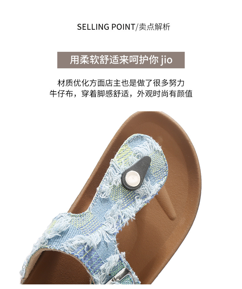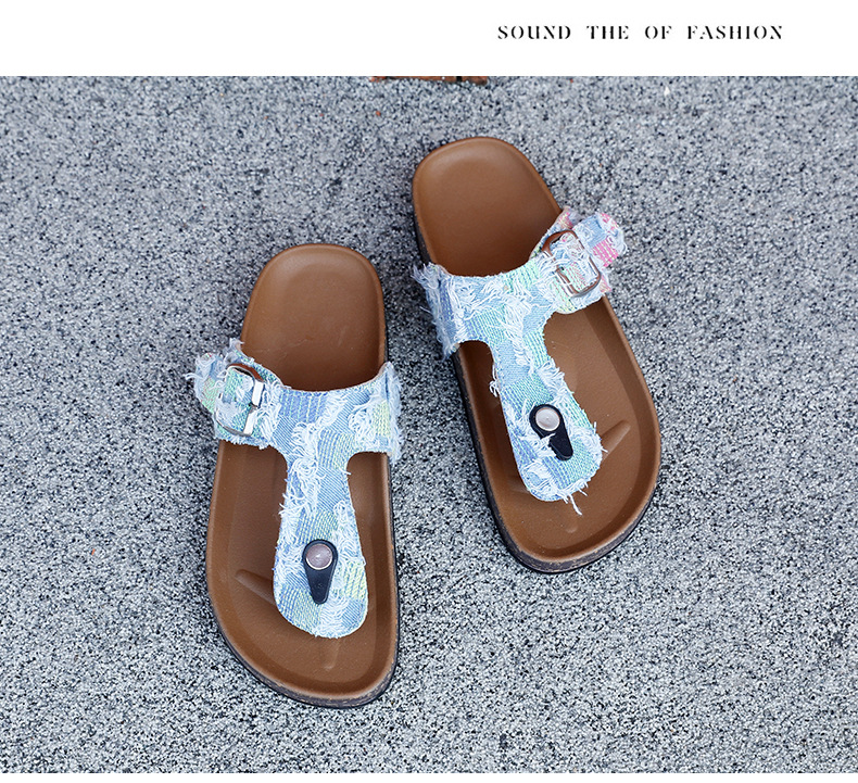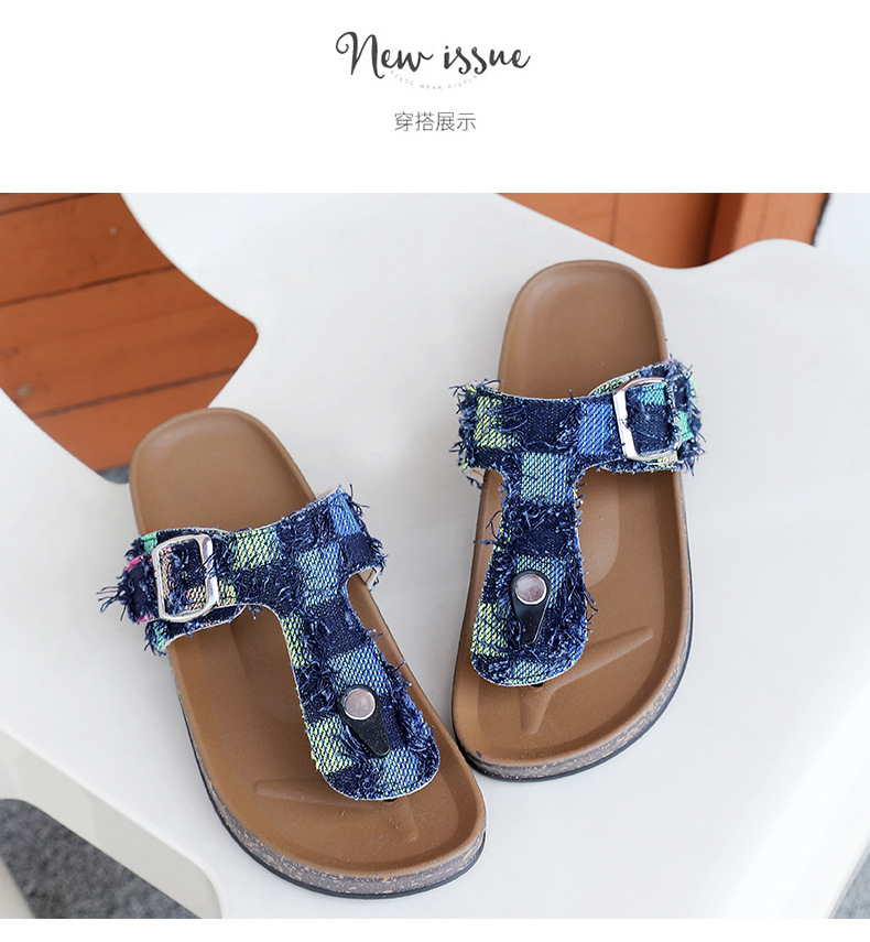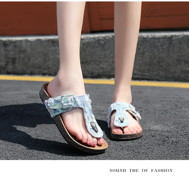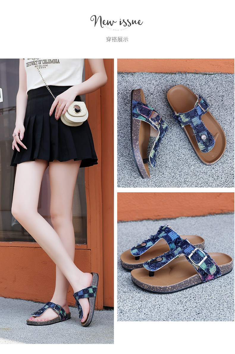 여름 헤링본 신발, 부드러운 밑창 플랫 슬리퍼, 헤링본 데님 여학생 비치 슬리퍼, 여성용 슬리퍼, 크로스보더스토어 가기