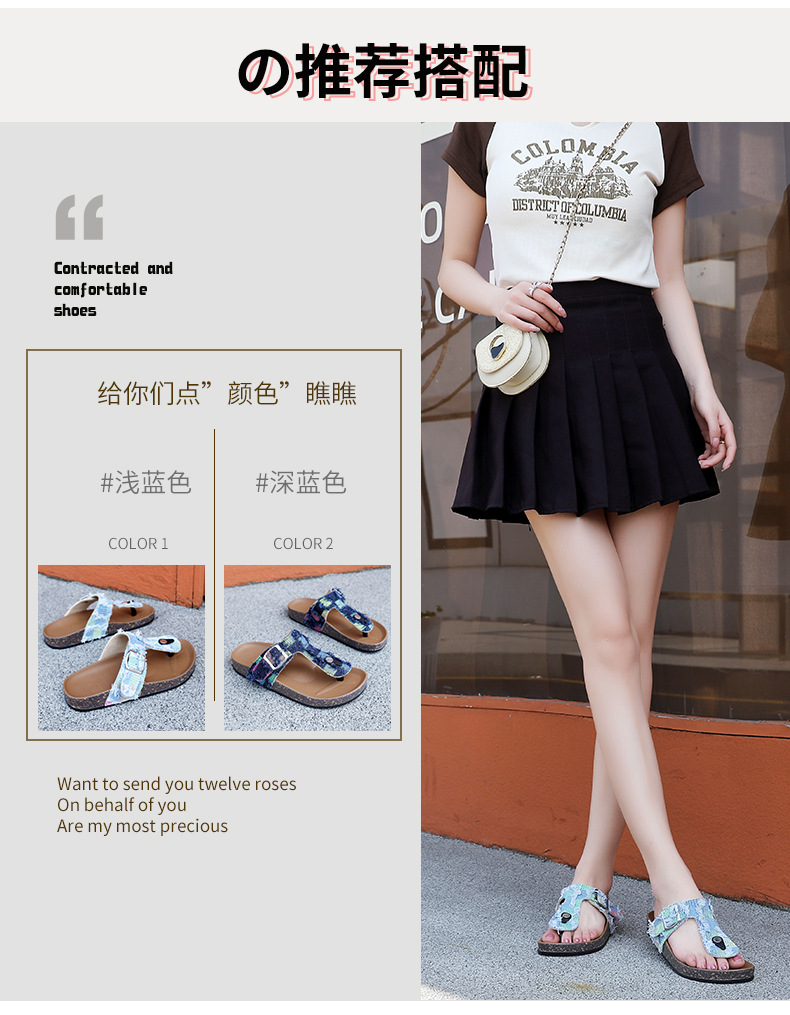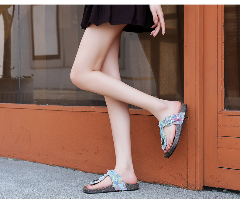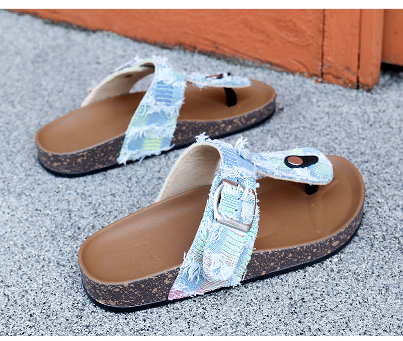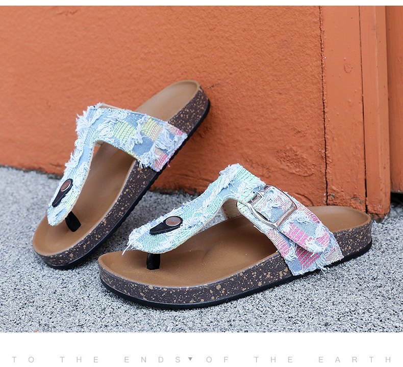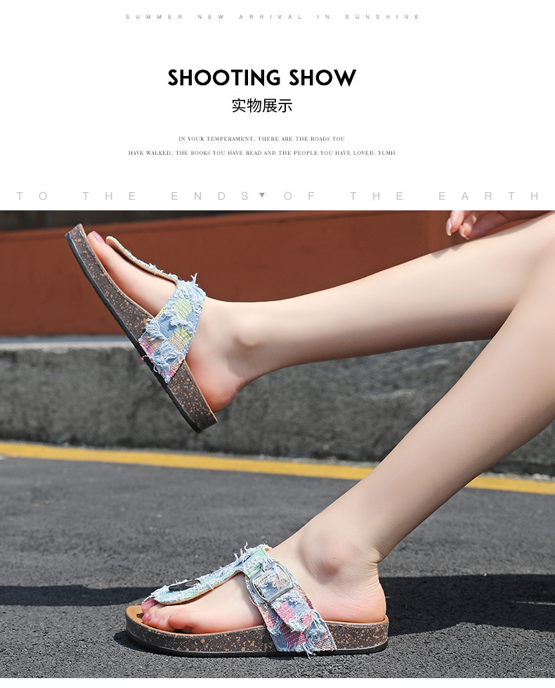 여름 헤링본 신발, 부드러운 밑창 플랫 슬리퍼, 헤링본 데님 여학생 비치 슬리퍼, 여성용 슬리퍼, 크로스보더스토어 가기
