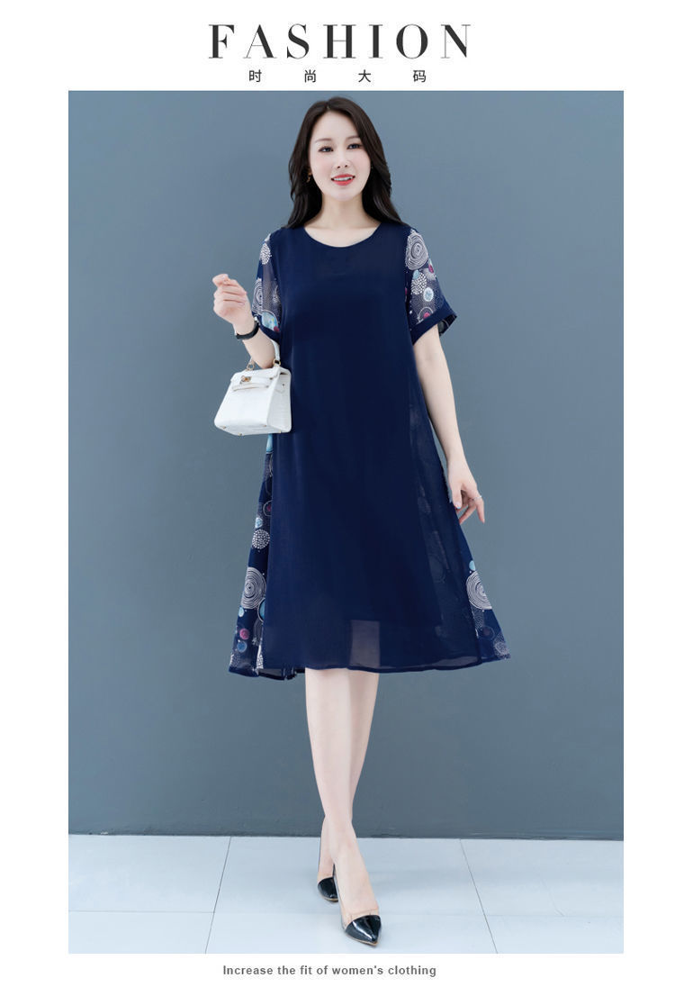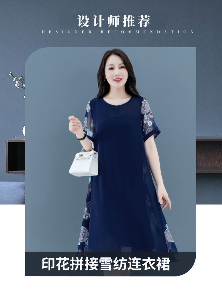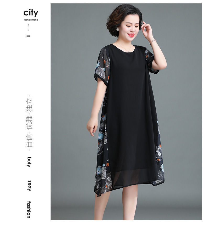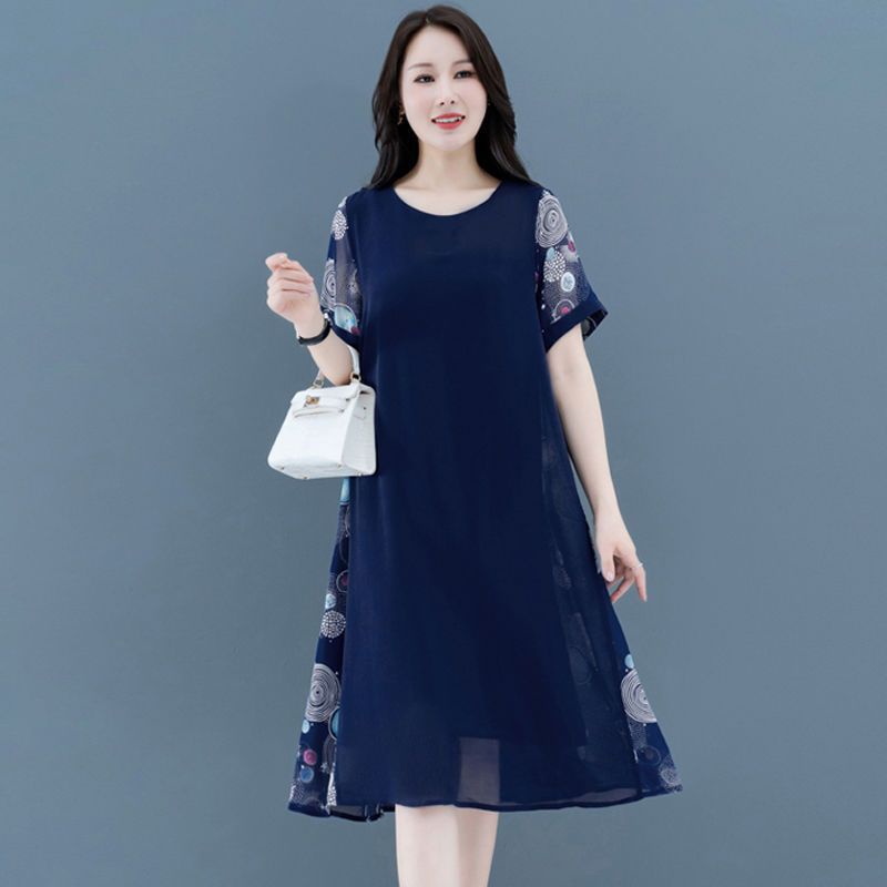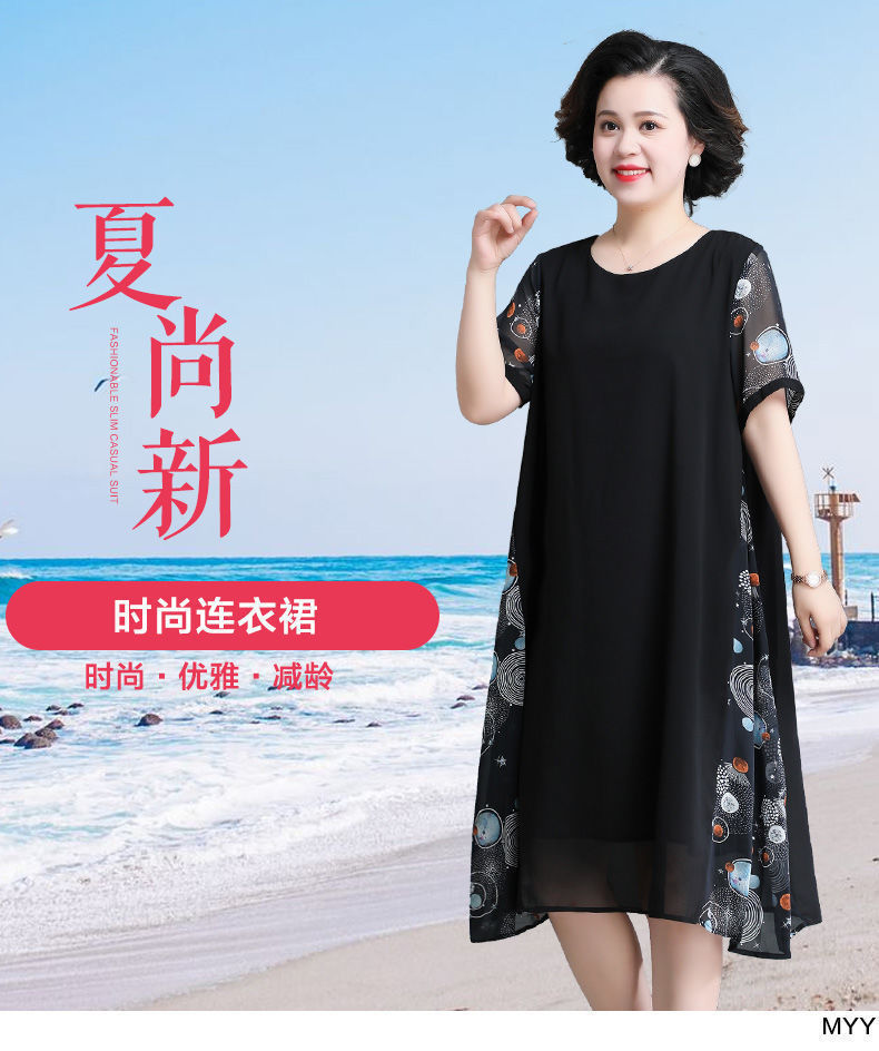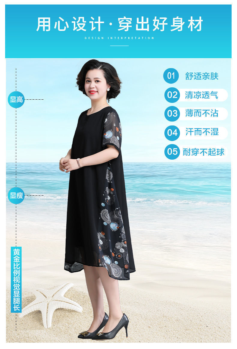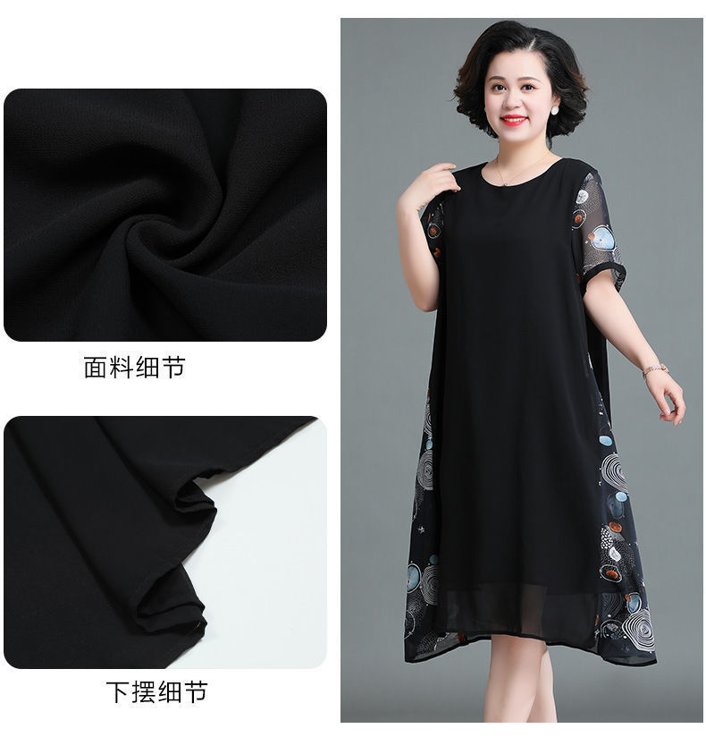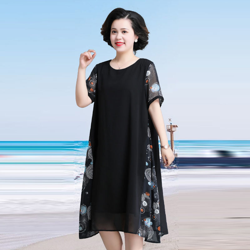 중년 지방 어머니 고급 원피스 여성 플러스 사이즈 시폰 서양식 배꼽 커버 슬리밍 루즈 롱 스커트스토어 가기