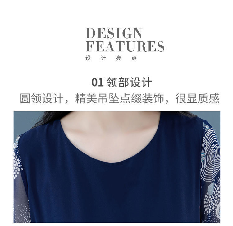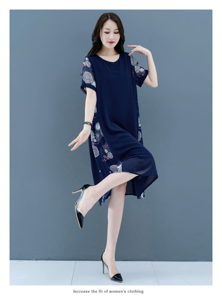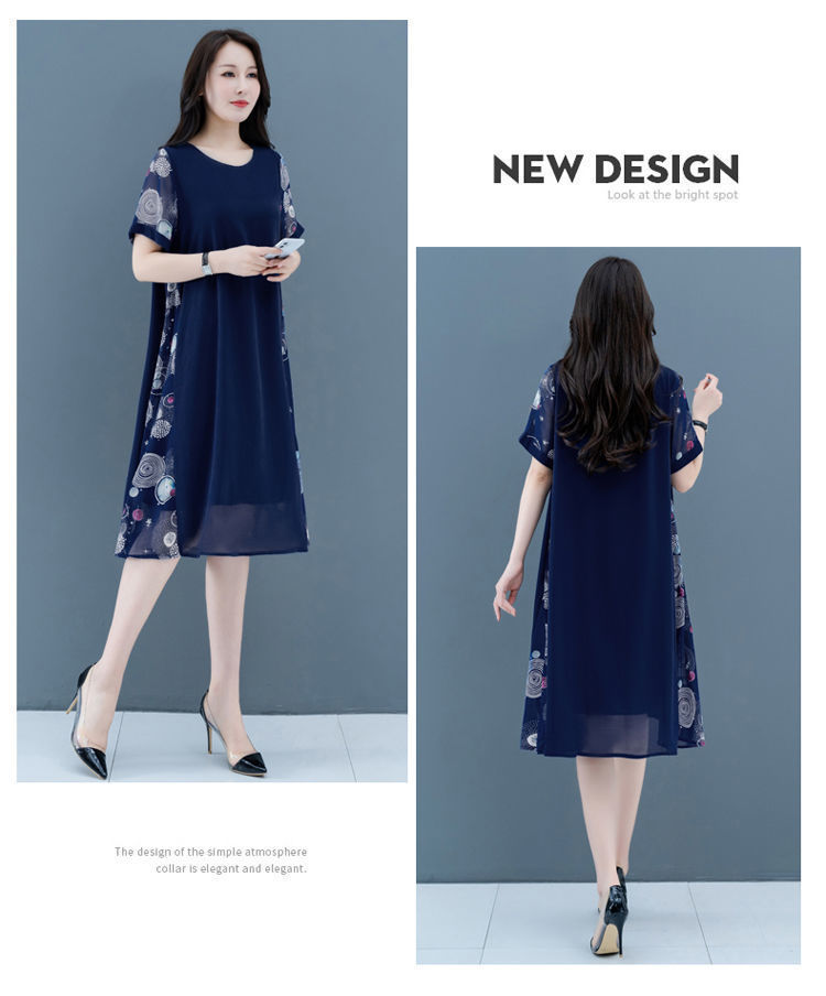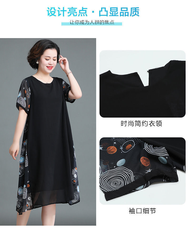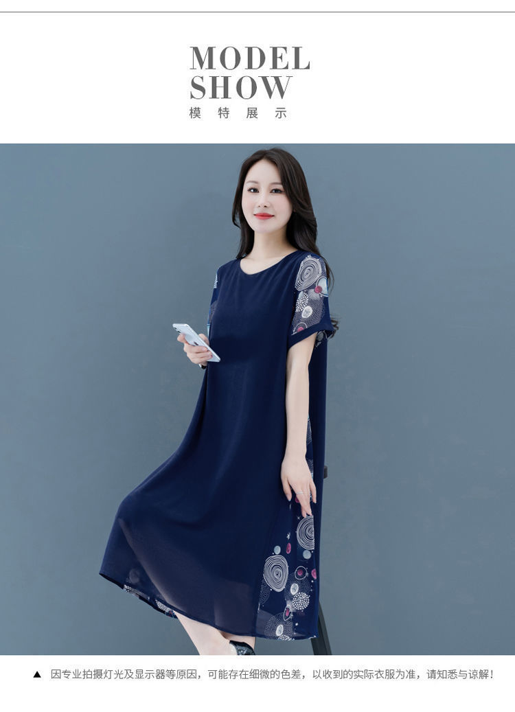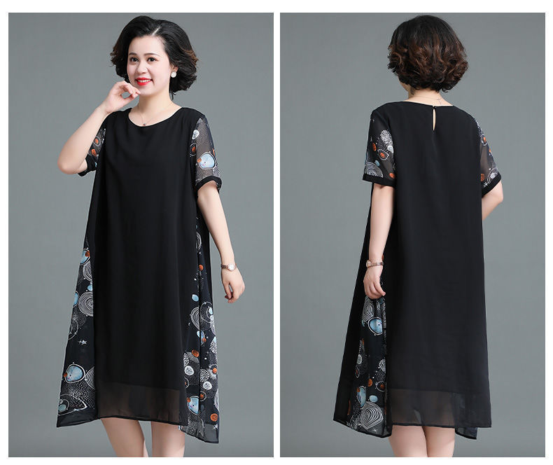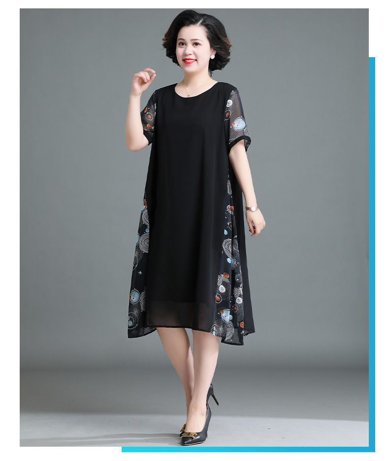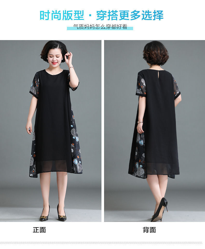 중년 지방 어머니 고급 원피스 여성 플러스 사이즈 시폰 서양식 배꼽 커버 슬리밍 루즈 롱 스커트스토어 가기
