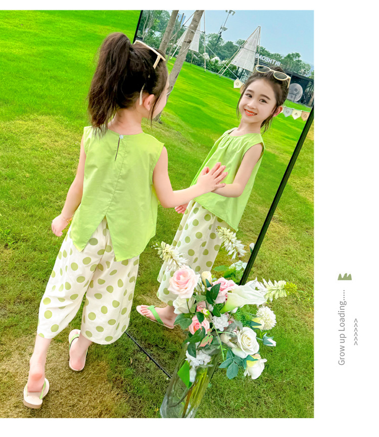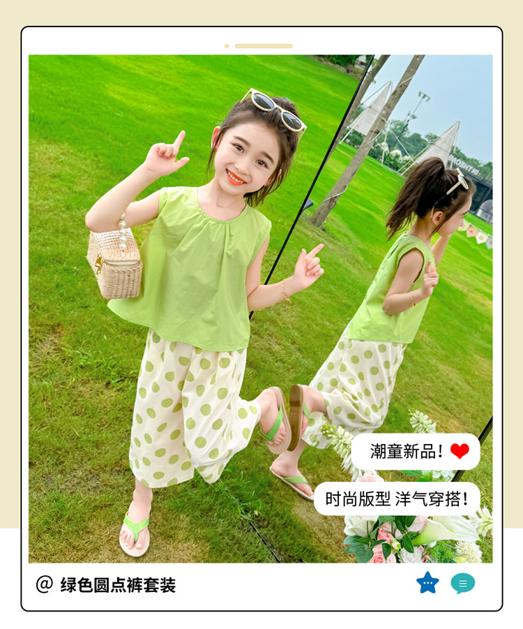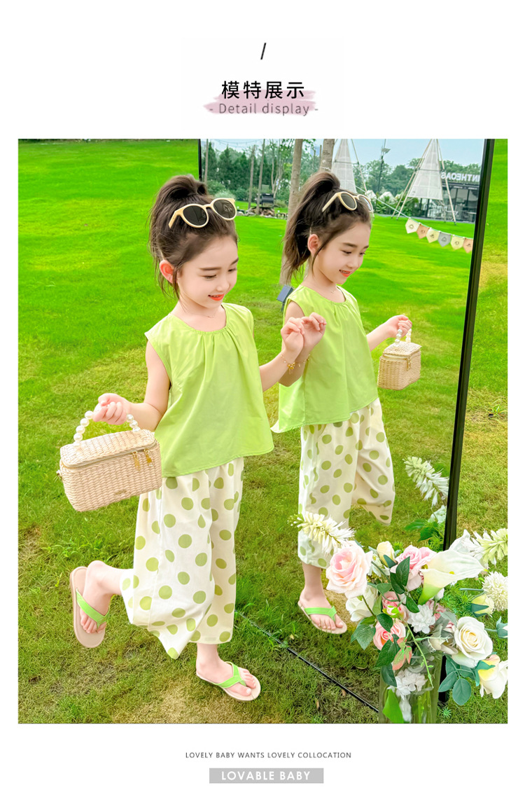 소녀 그린 닷 바지 세트 2025 여름 새로운 패션 소녀 세련된 투피스 세트 어린이 여름 원피스스토어 가기
