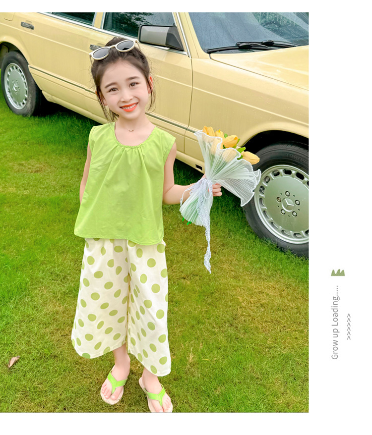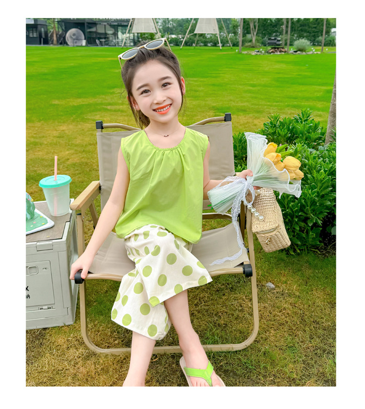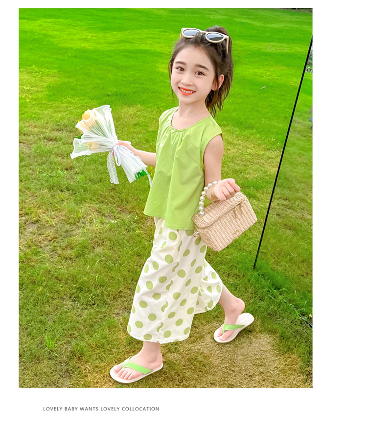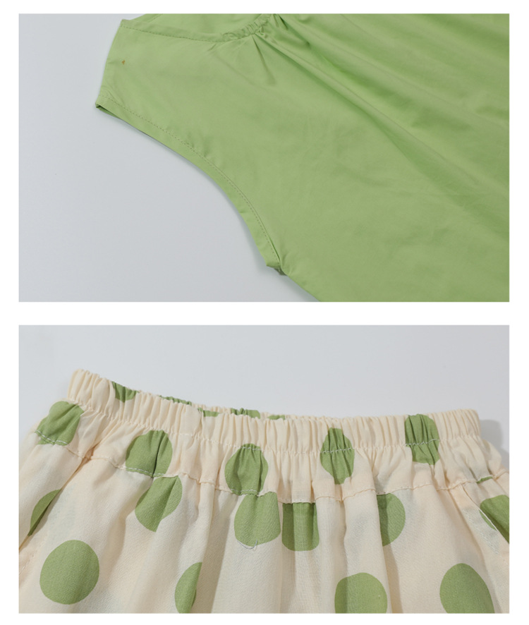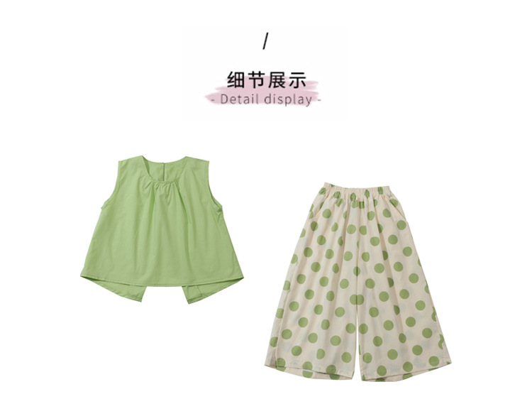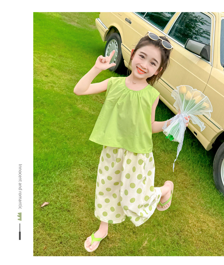 소녀 그린 닷 바지 세트 2025 여름 새로운 패션 소녀 세련된 투피스 세트 어린이 여름 원피스