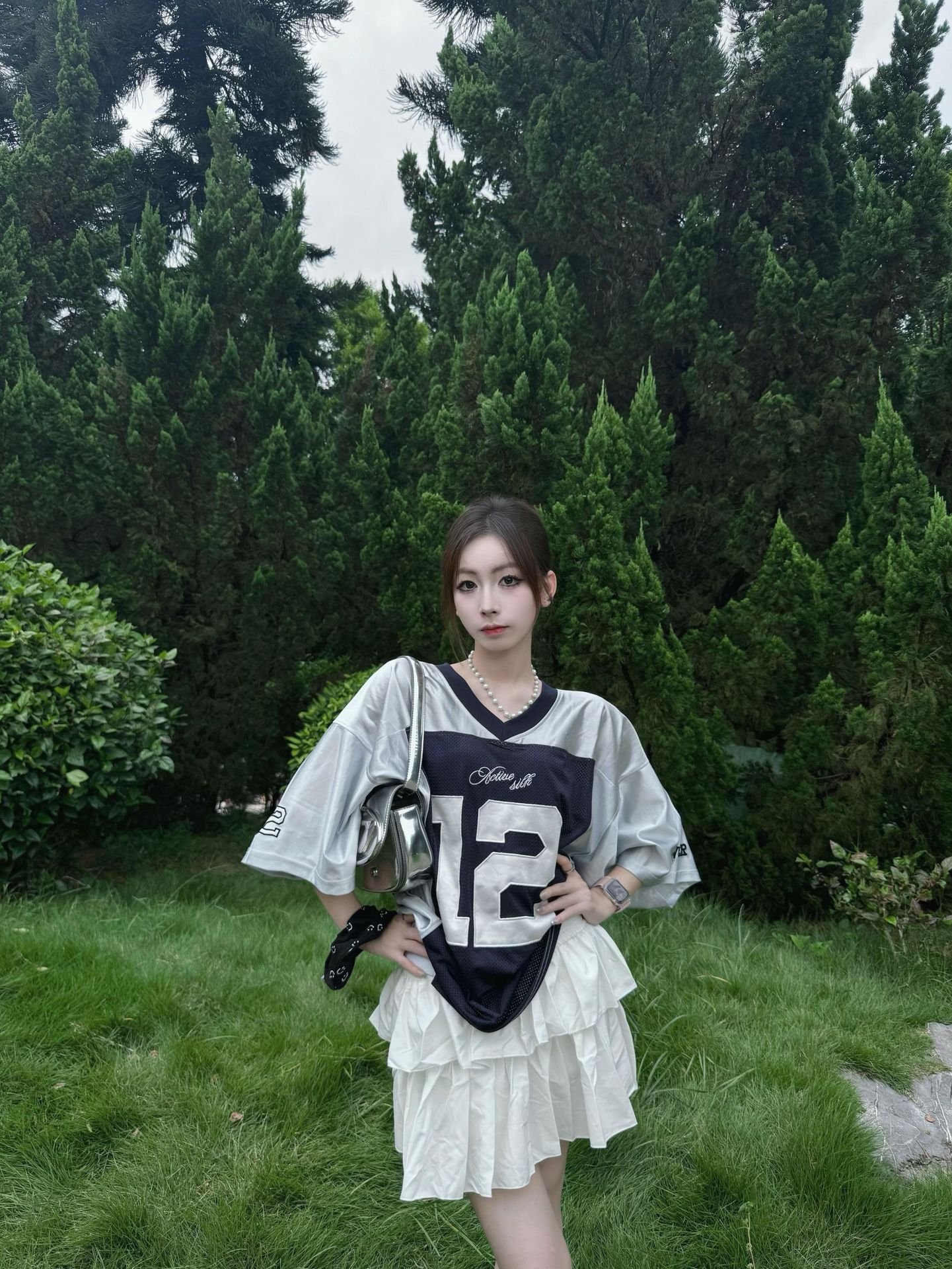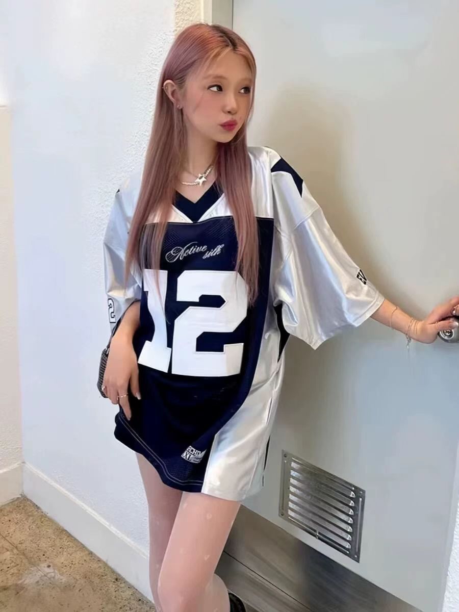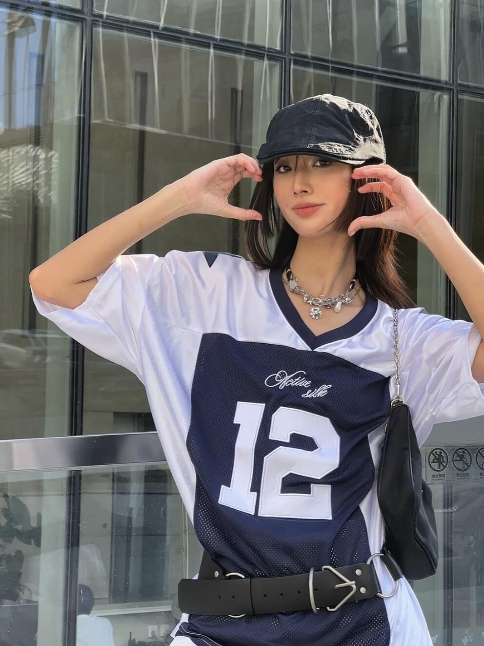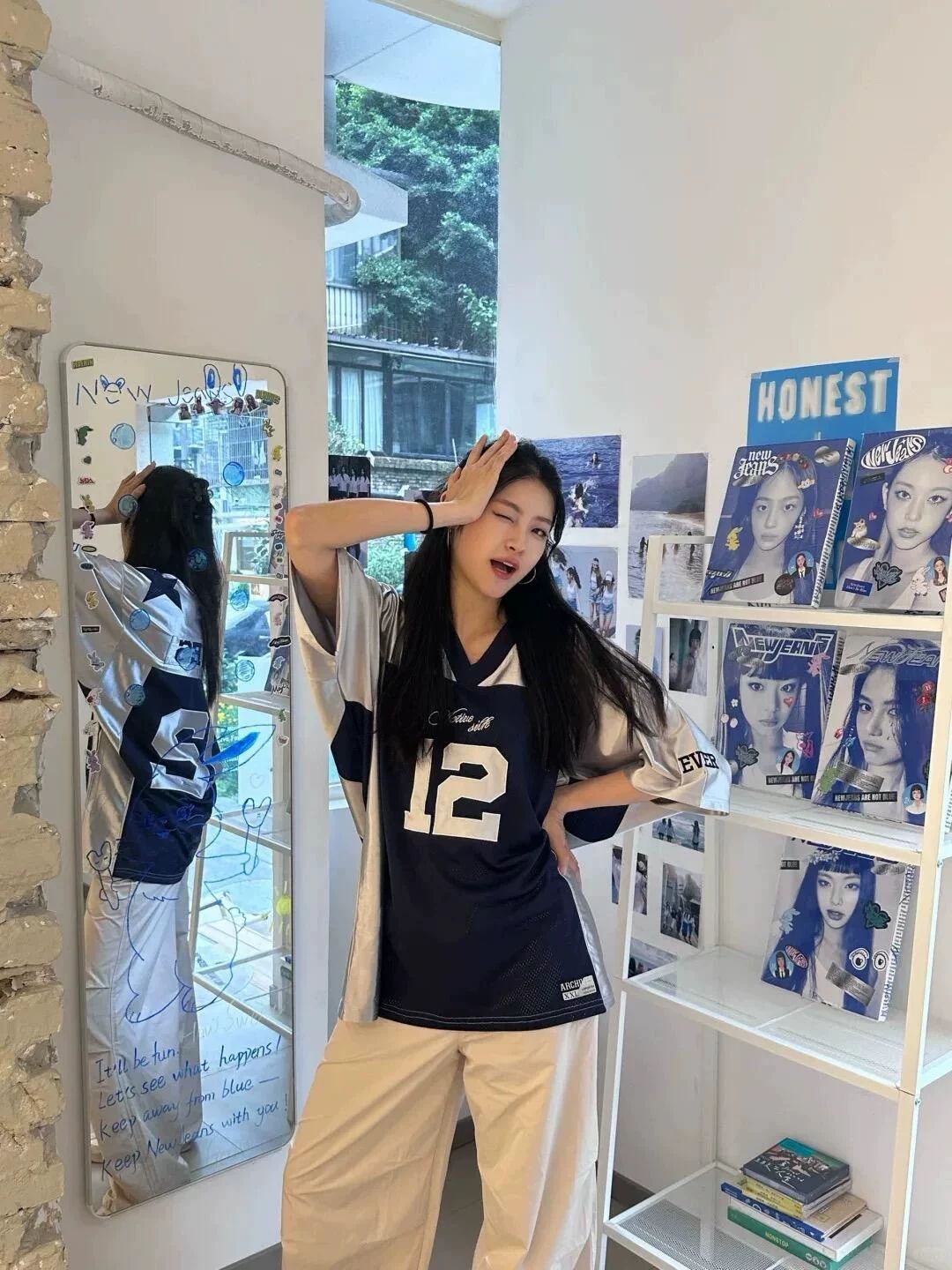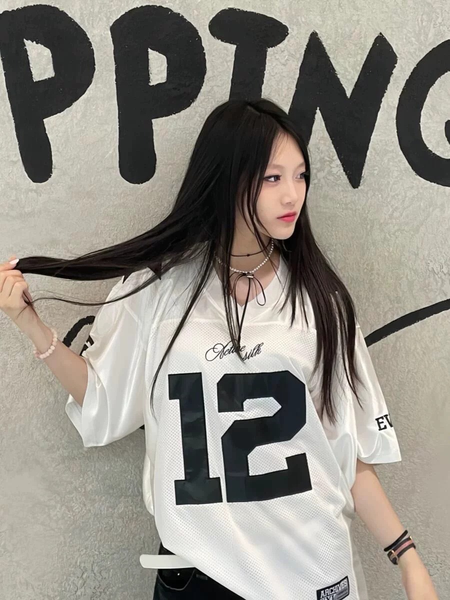 재고 한국 패션 브랜드 2000 아카이브 짧은 소매 여성 티셔츠 Yang Chaochao 같은 스타일 12 American Retro Jersey