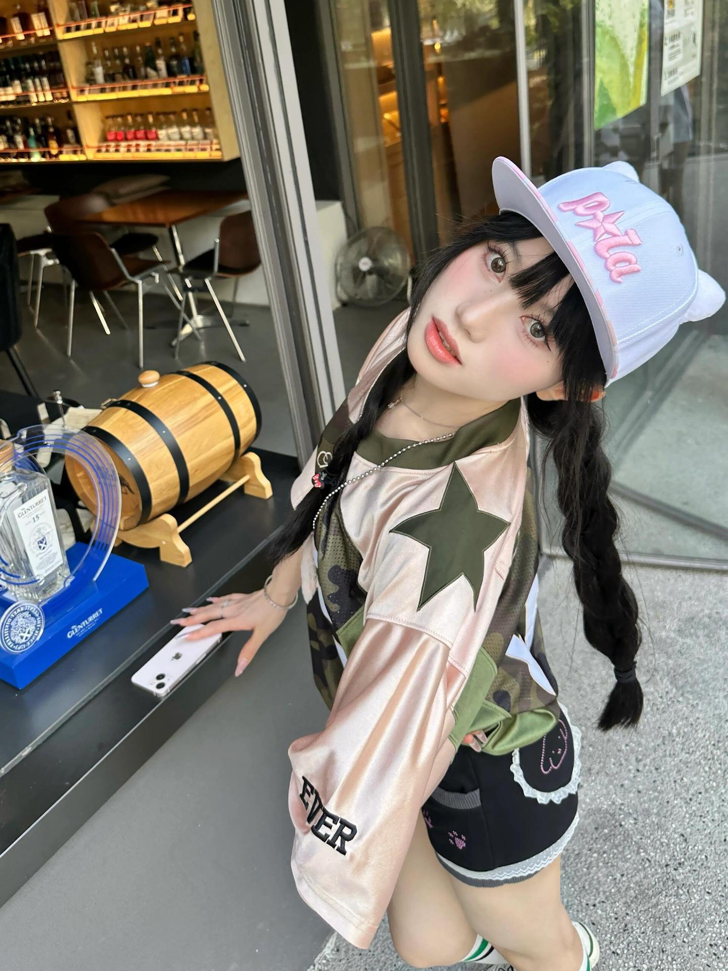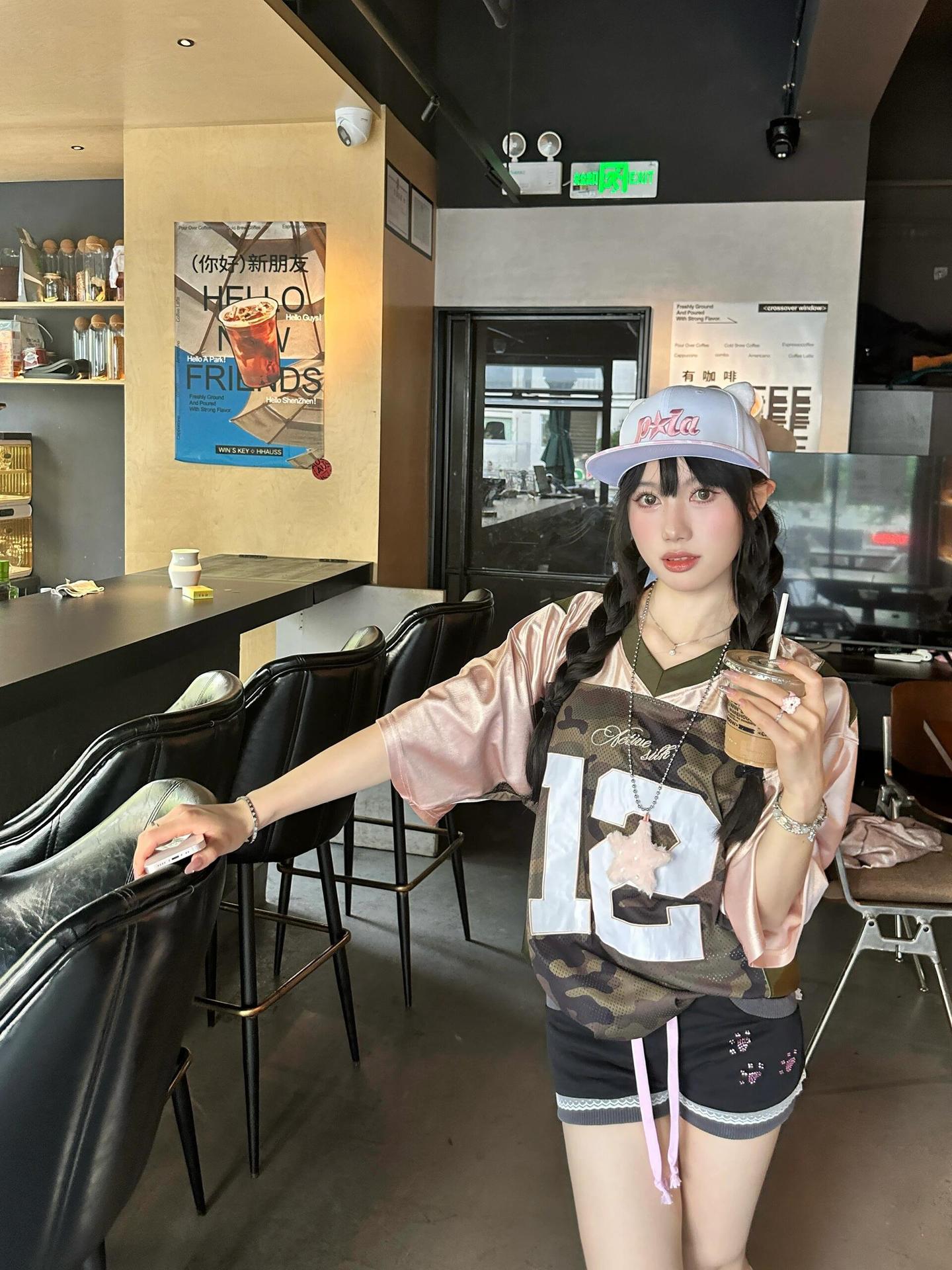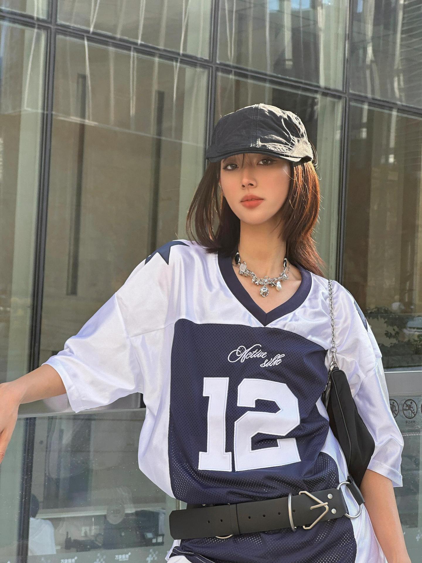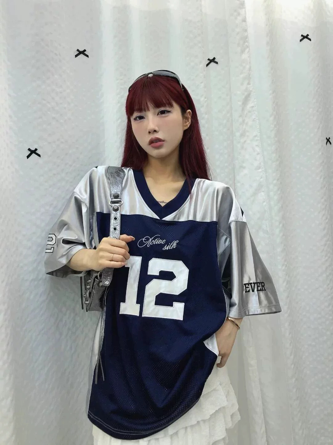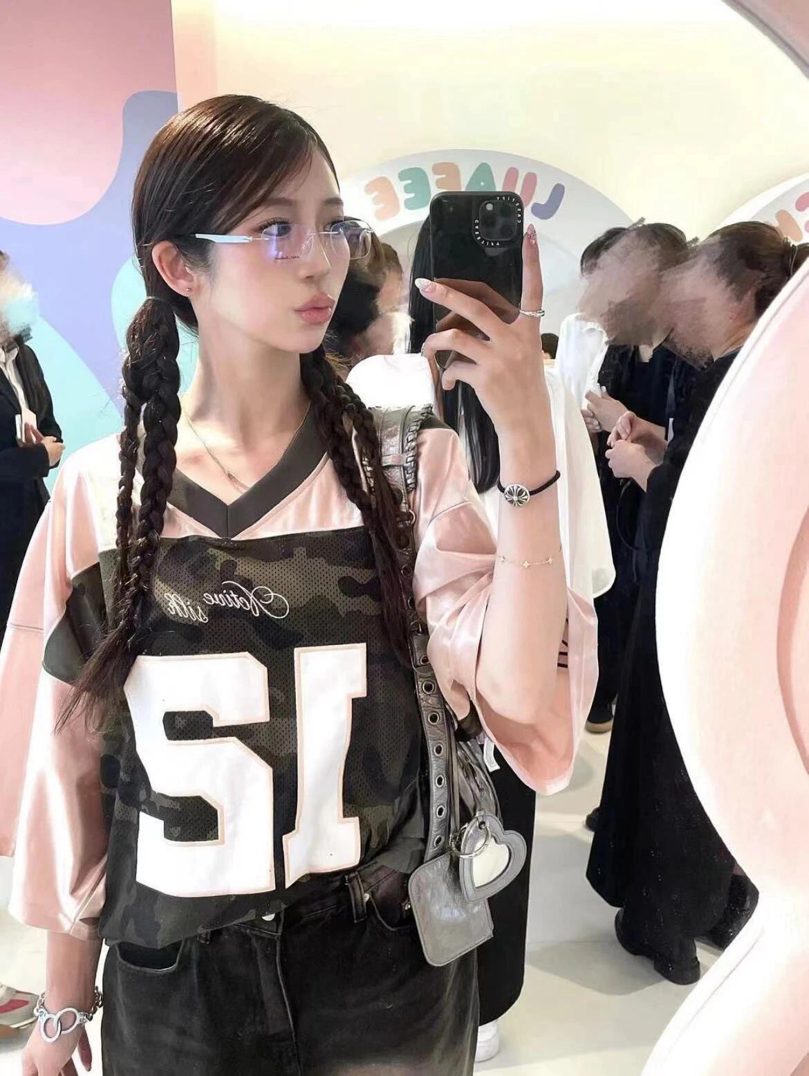 재고 한국 패션 브랜드 2000 아카이브 짧은 소매 여성 티셔츠 Yang Chaochao 같은 스타일 12 American Retro Jersey