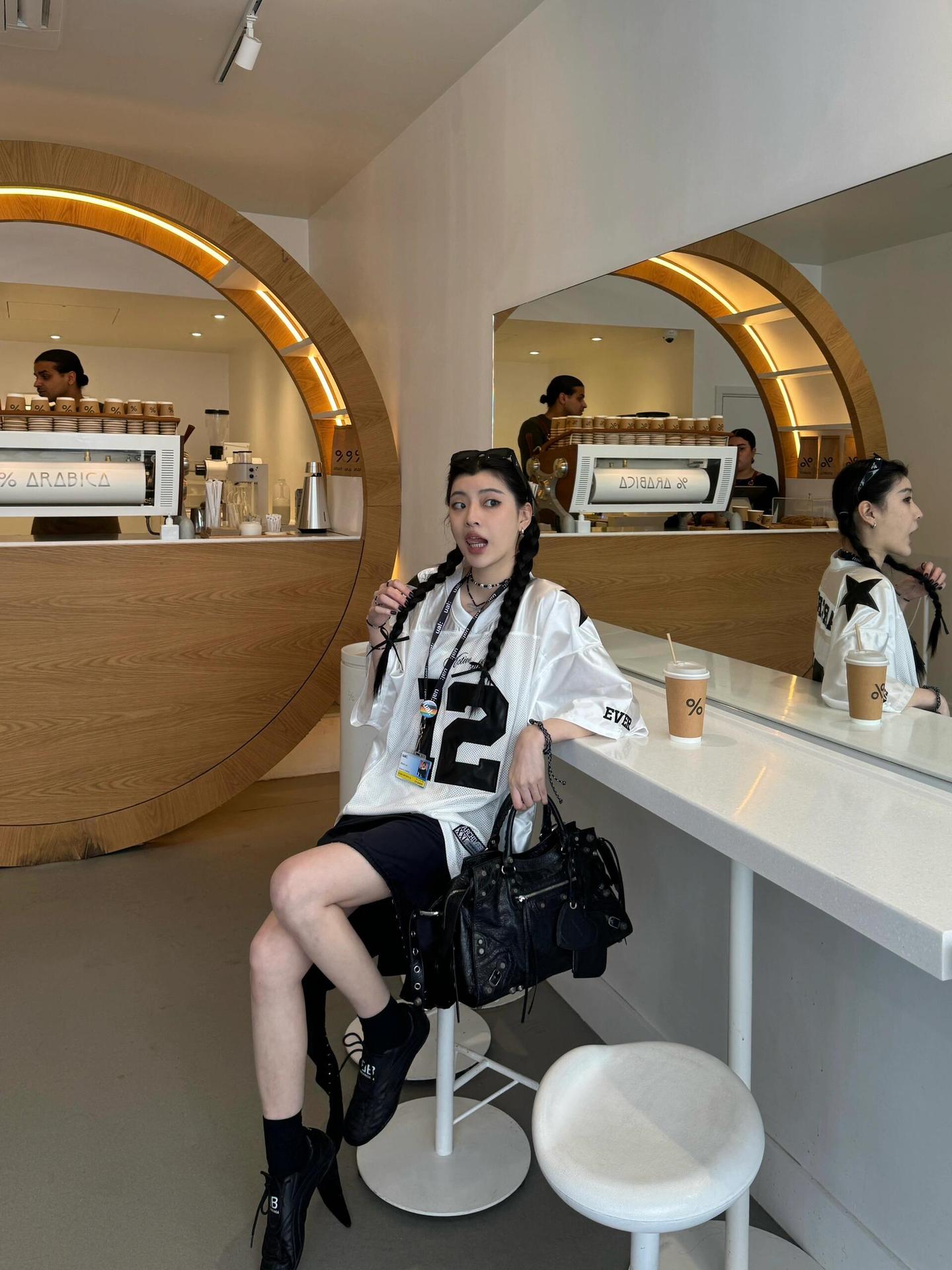 재고 한국 패션 브랜드 2000 아카이브 짧은 소매 여성 티셔츠 Yang Chaochao 같은 스타일 12 American Retro Jersey스토어 가기