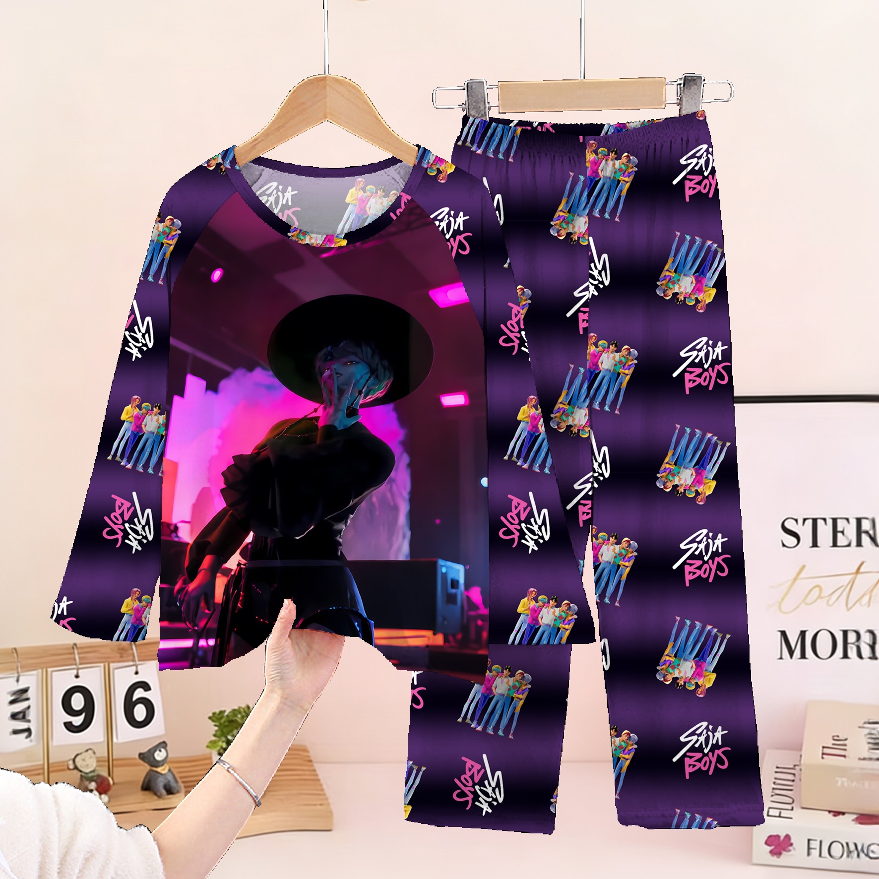 동남아 아동 잠옷, 긴팔 바지, 라부부 귀여운 만화 슈트, 에어컨이 있는 가정복으로도 착용 가능