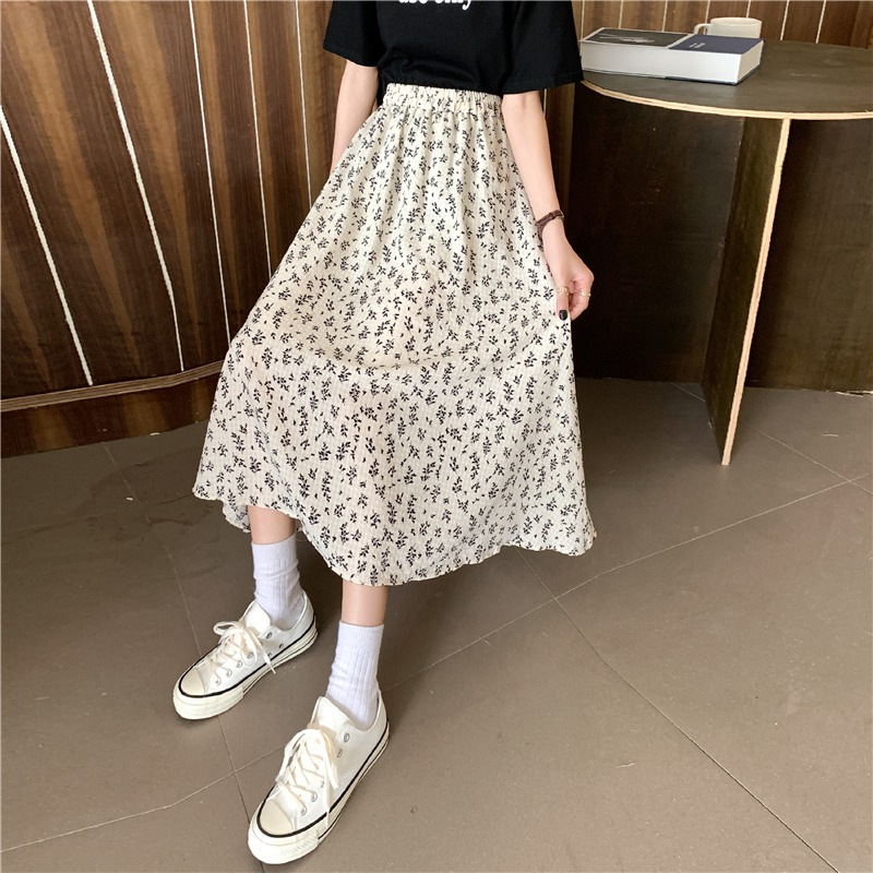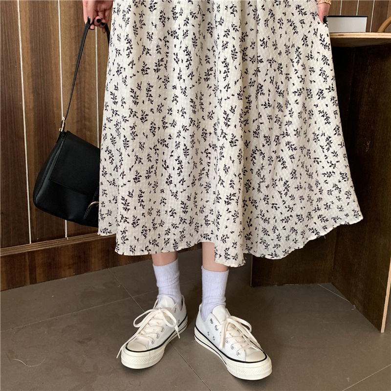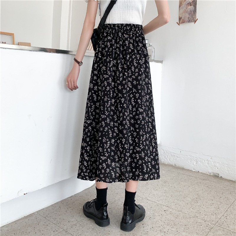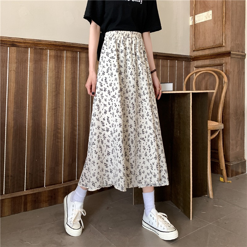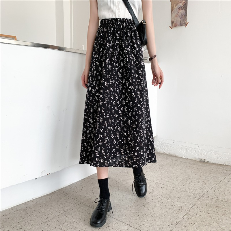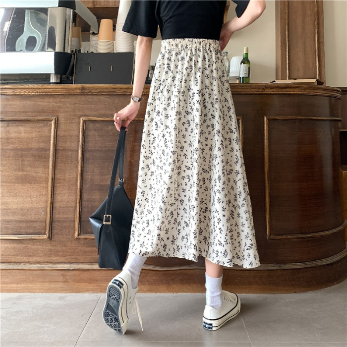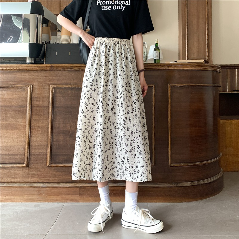 여름 여성 2025 새로운 고급 꽃무늬 A라인 스커트 캐주얼 중간 길이 스커트 크로스보더스토어 가기