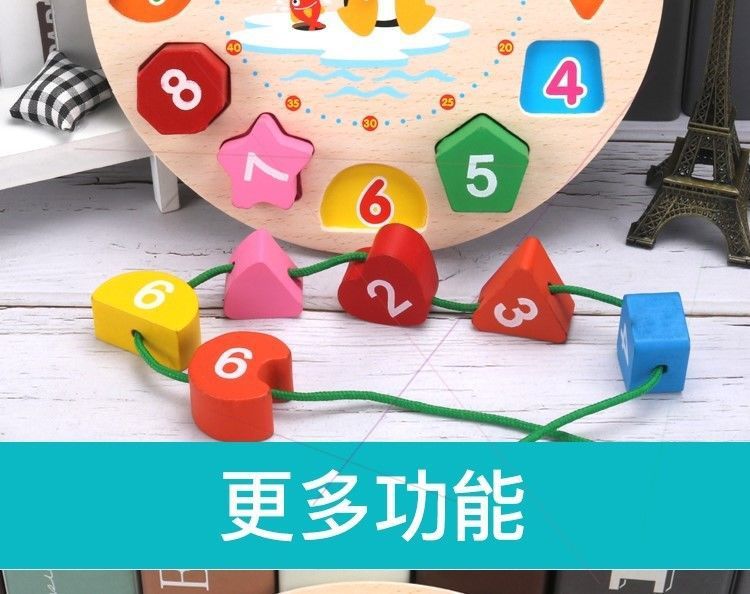 어린이 나무 펭귄 구슬 디지털 스레딩 시계 만화 다채로운 색상 인지 학습스토어 가기