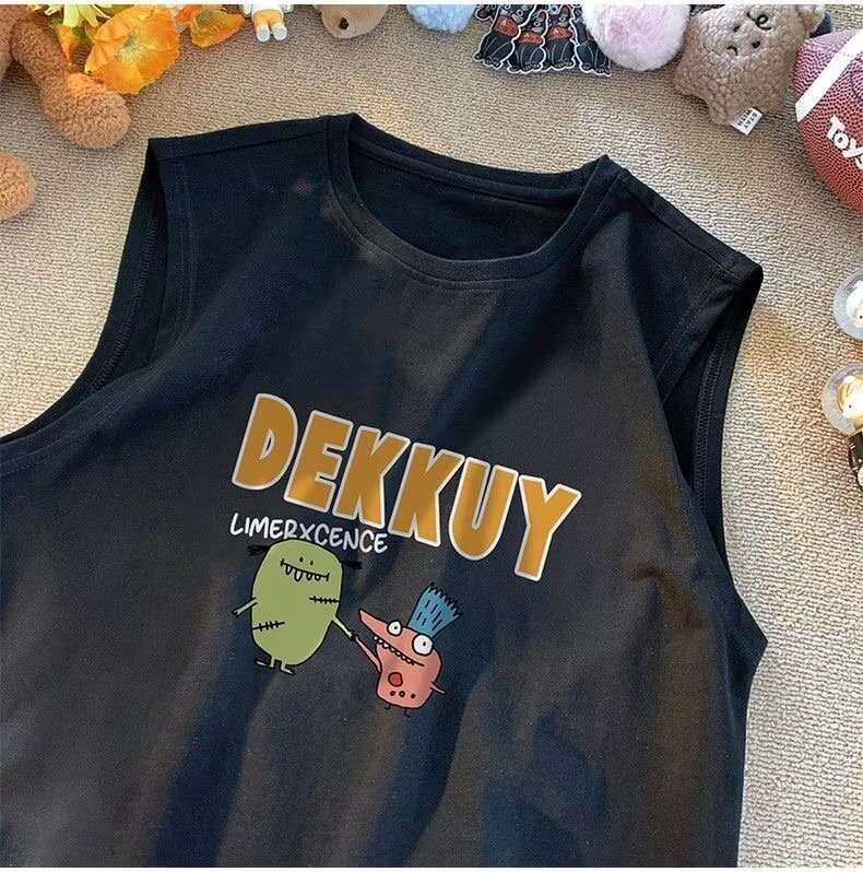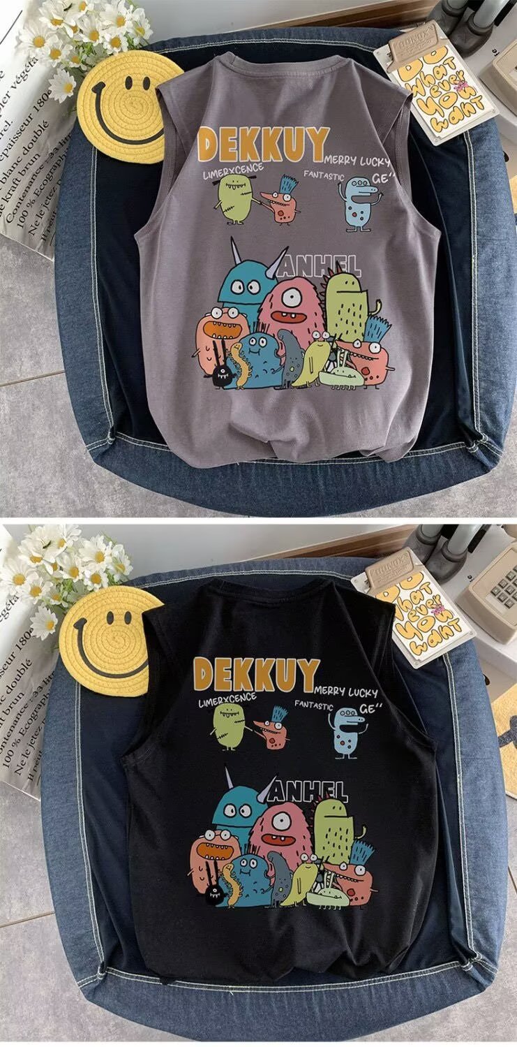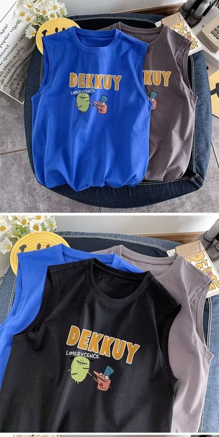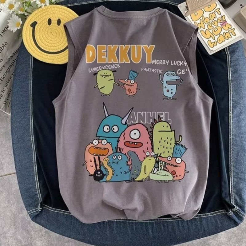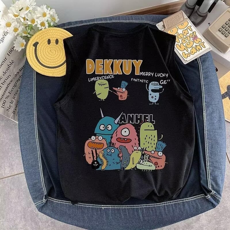 아동용 민소매 조끼 반팔 티셔츠 남성용 2025 여름 신작 몬스터 파라다이스 여름 스타일 소년 트렌디 T 여름 의류 스트리트웨어스토어 가기