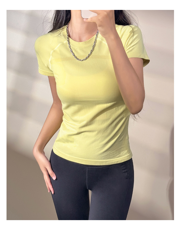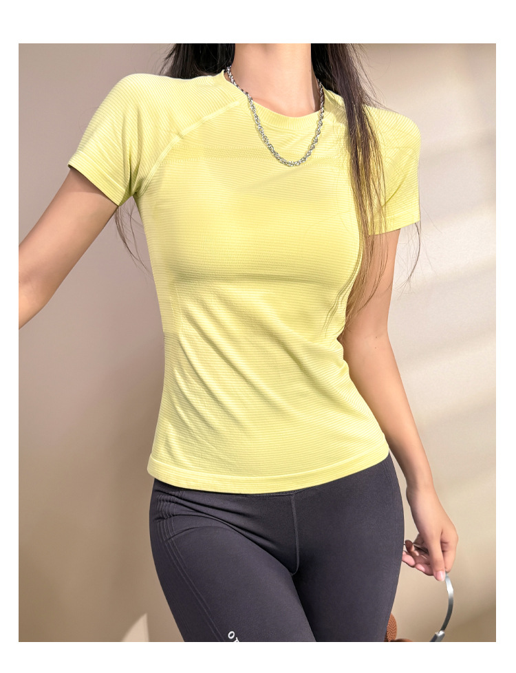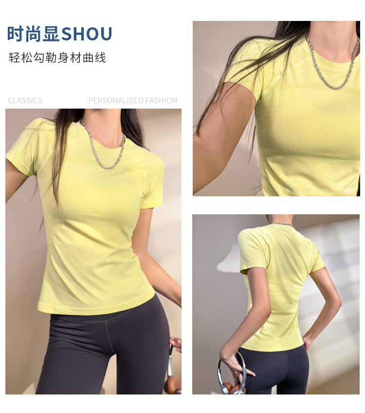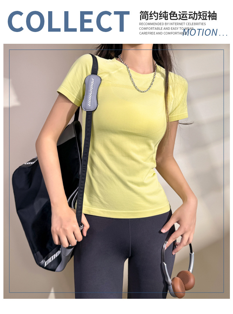 스포츠 피트니스 짧은 소매 빠른 건조 요가 세트 2025 봄과 여름 새로운 달리기 훈련 탑 꽉 슬림 티셔츠스토어 가기
