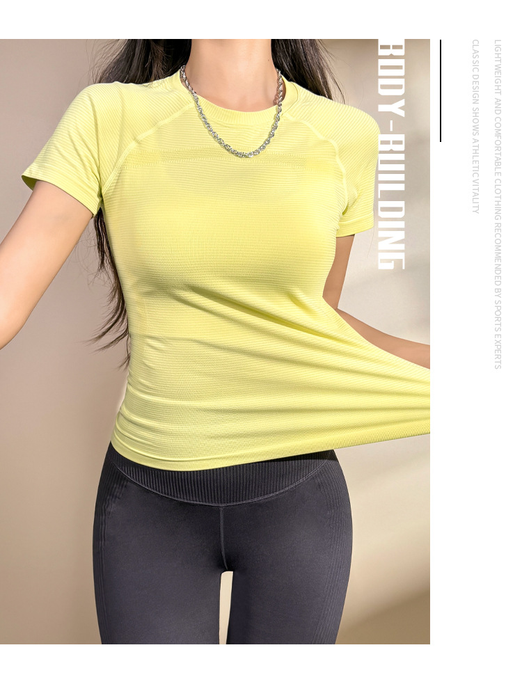스포츠 피트니스 짧은 소매 빠른 건조 요가 세트 2025 봄과 여름 새로운 달리기 훈련 탑 꽉 슬림 티셔츠