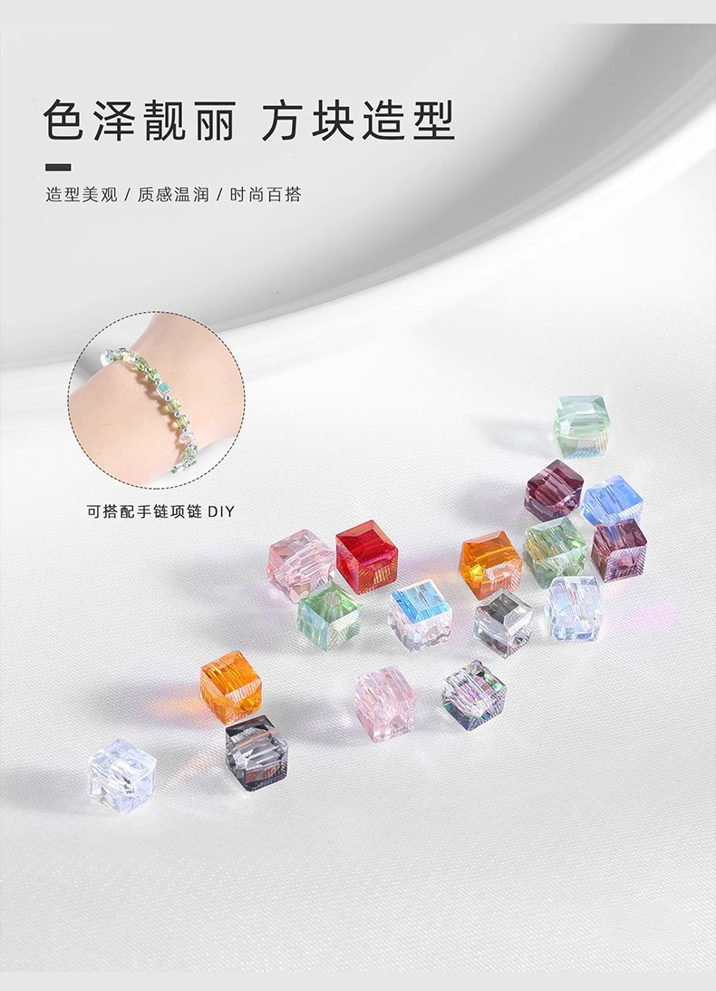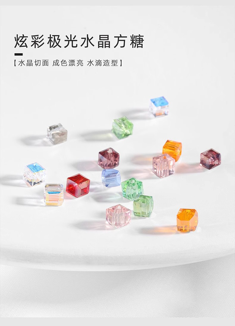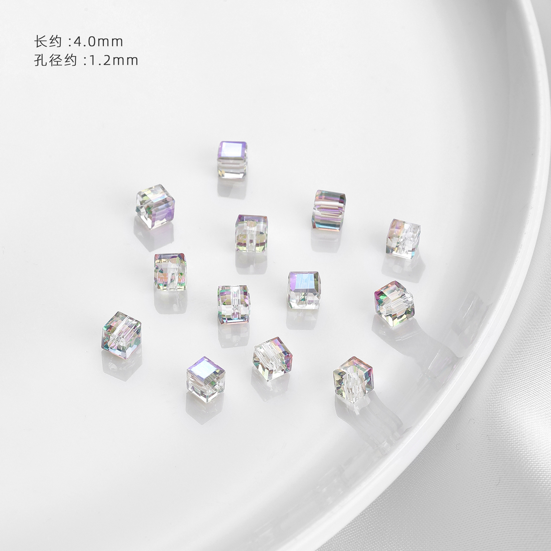 4mm 관통홀 다채로운 크리스탈 구슬 사각 설탕 느슨한 구슬 수제 diy 착용 팔찌 목걸이 구슬 보석 재료 도매스토어 가기