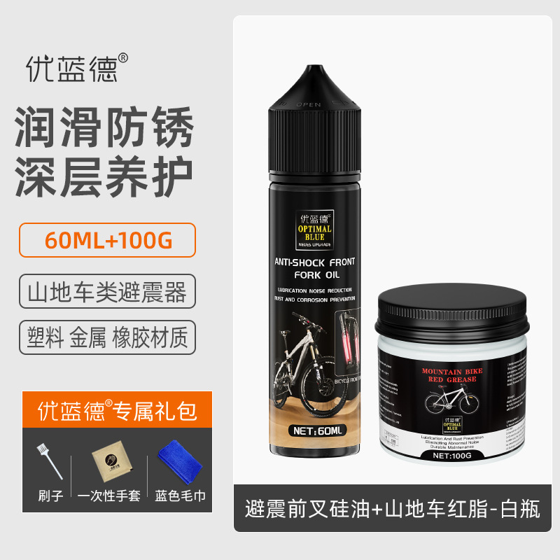 • [고급] YLD 충격흡수 프론트 포크 실리콘 오일-60ML+ [우수] YLD 산악자전거 레드팻-화이트 병 100g (수건+브러시+일회용 장갑 포함)