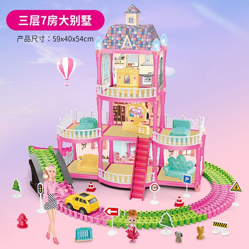 • 창문 선물 상자 [3층, 7개 방] 도시철도 빌라 하우스 + 인형 11inch개(전기차 1대 포함)