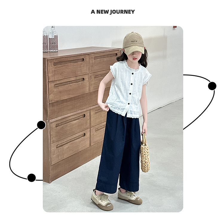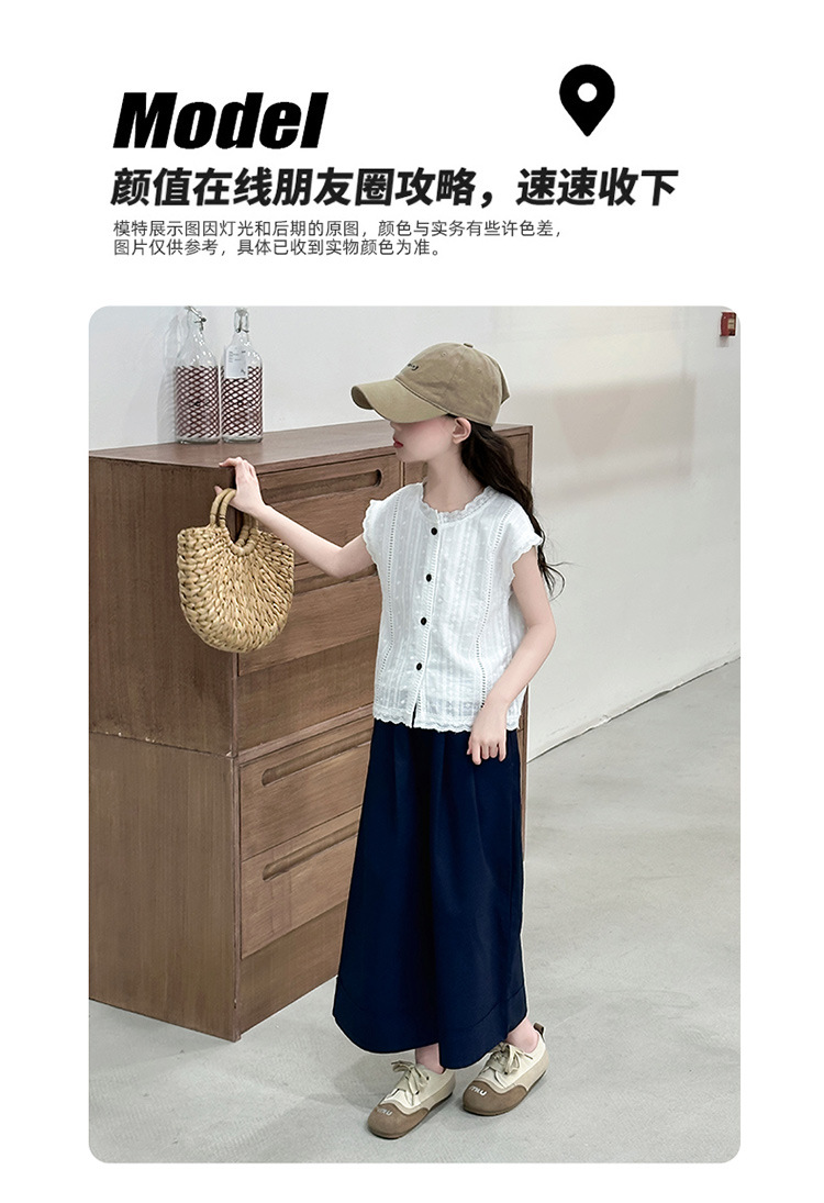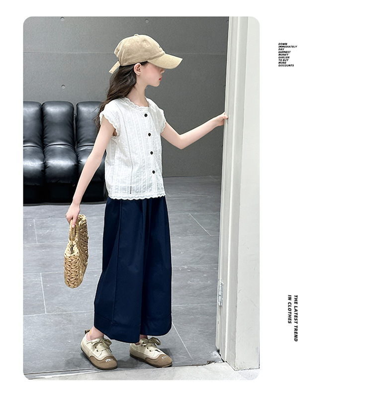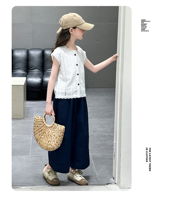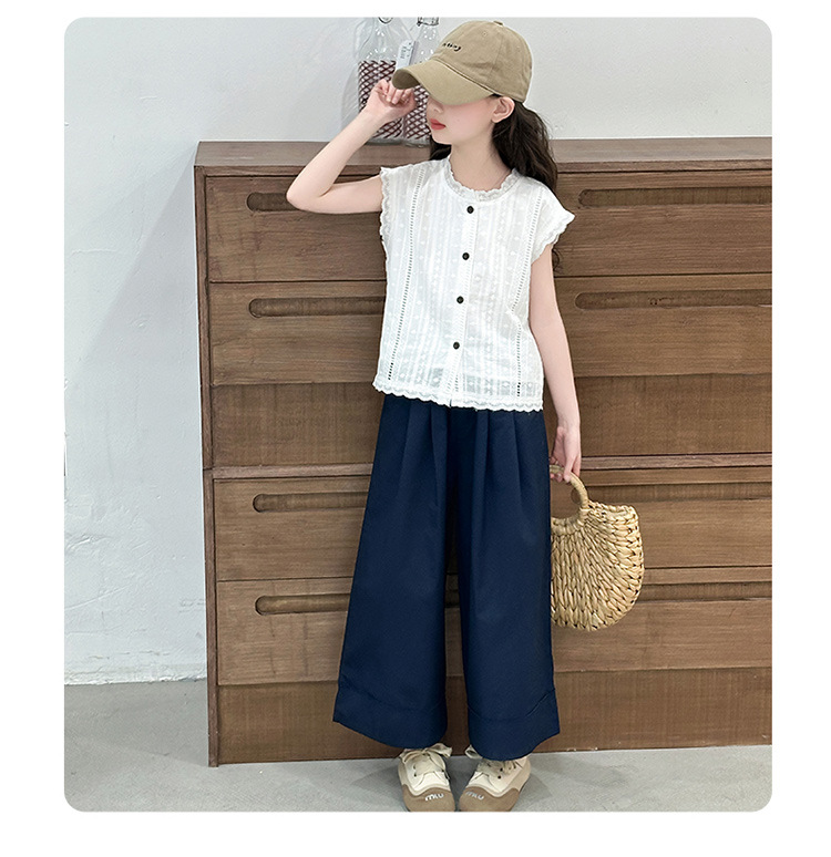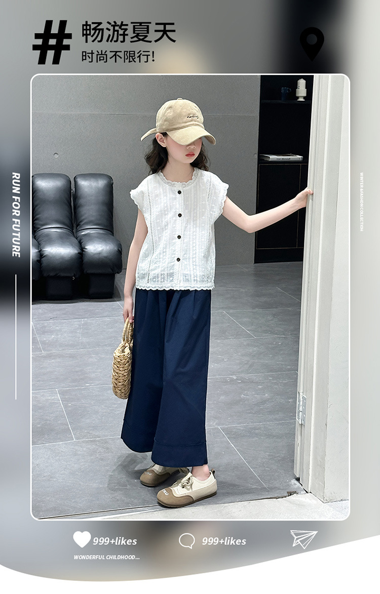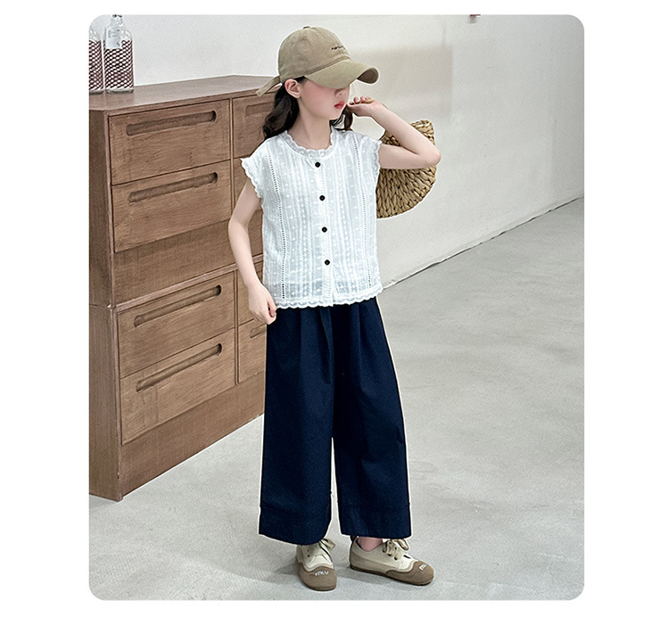 소녀 세트 여름 2025 새로운 어린이 패션 우아한 중공 레이스 조끼 투피스 소녀의 여름 패션